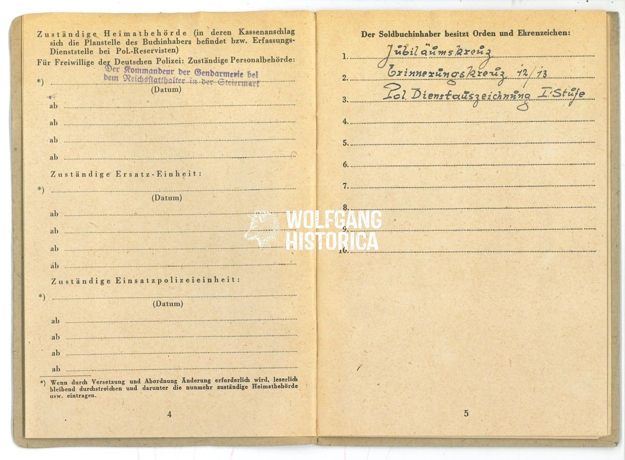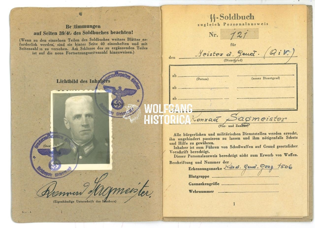 Dienstpass & SS-Soldbuch Grouping – Gendarmerie-Meister (3x Awards)