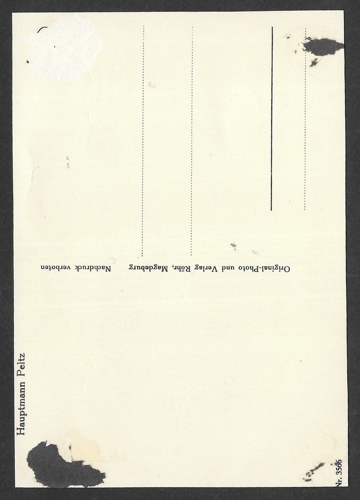 Original Wartime Signature on a Postcard of Dietrich Peltz. Generalmajor Dietrich Peltz (6 September 1914, Gießen † 10 August 2001, Munich) was one of the Luftwaffe’s most decorated bomber officers, rising to the rank of Generalmajor and earning the Knight’s Cross of the Iron Cross with Oak Leaves and Swords. Recognized for his aggressive leadership in dive-bomber operations and later as a planner of strategic bombing raids, he became one of the youngest generals in the German armed forces.