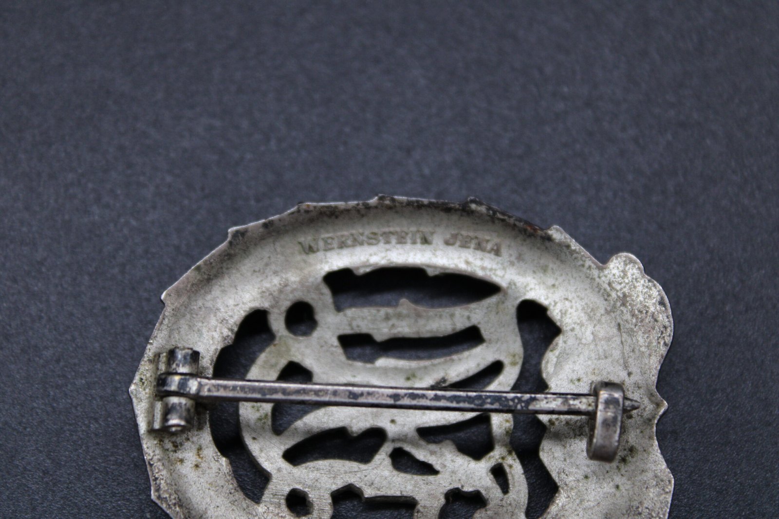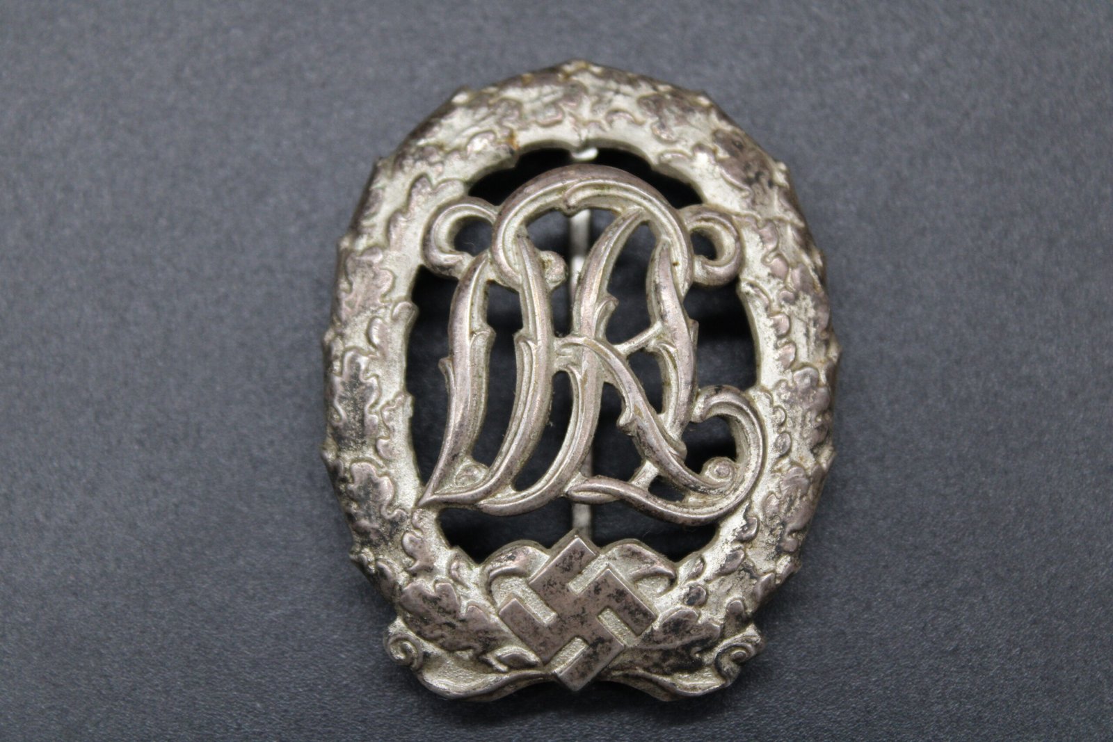 Original DRL-Sportabzeichen in Silber (DRL-Sportsbadge in Silver). Maker marked: Wernstein, Jena and D.R.G.M. 35269. Condition as seen.