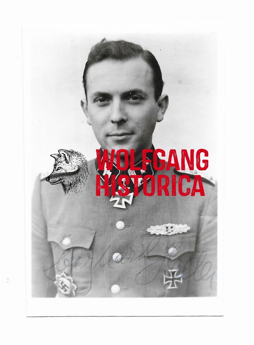 Original Postwar Signature on a Postwar Photo of Eberhard Heder. SS-Sturmbannführer Eberhard Heder (30.06.1918 † 18.11.2017) earned the Deutsches Kreuz in Gold on March 11, 1943 as SS-Obersturmführer with the 3. Kompanie/ SS-Pionier-Bataillon 5 “Wiking” and the Ritterkreuz on November 18, 1944 as SS-Hauptsturmführer und Führer of the SS-Panzer-Pionier-Bataillon 5 of the 5. SS-Panzer-Division “Wiking”. Smaller Size.
