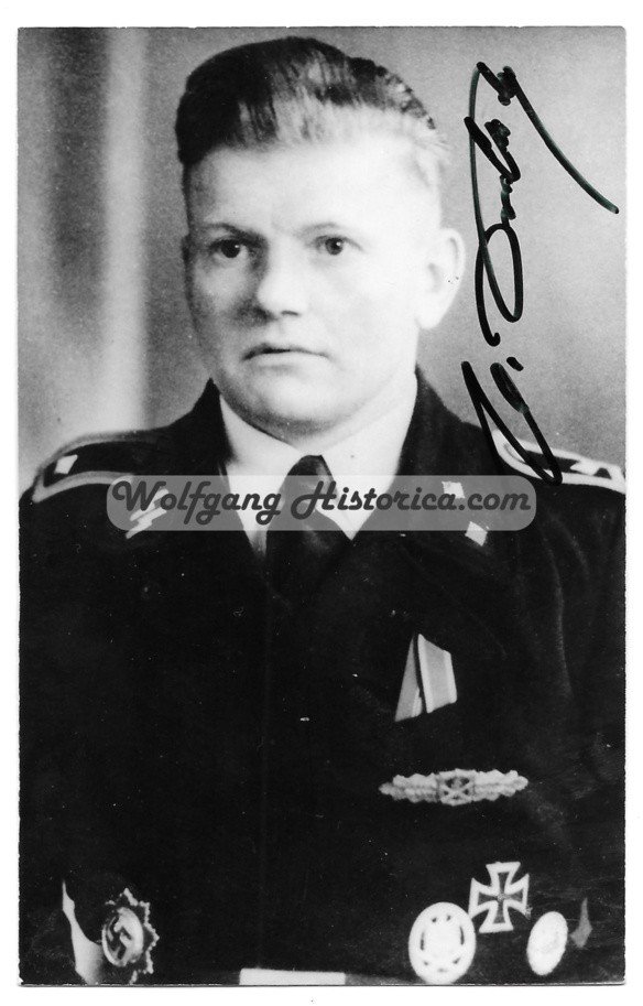 Original Postwar Signature on a Postwar Photo of Emil Seibold. SS-Hauptscharführer Emil Seibold (26.02.1907 † 11.09.1990) earned the Ritterkreuz on May 6, 1945 as SS-Hauptscharführer und Zugführer in the 8. Kompanie/ SS-Panzer-Regiment 2 of the 2. SS-Panzer-Division “Das Reich”. Good condition. Measuring: Postcardsize.