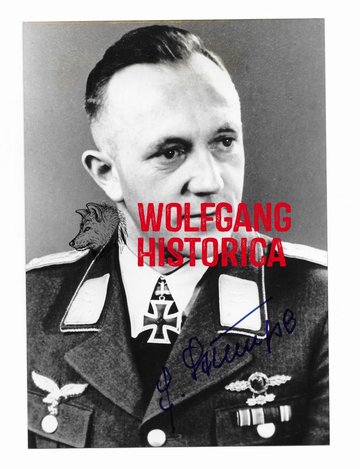 Original Postwar Signature on a Postwar Photo of Erich Stumpe. Oberleutnant Erich Stumpe (05.08.1904 in Sprottau † 27.12.1994) earned the Deutsches Kreuz in Gold on May 4, 1942 and the Ritterkreuz des Eisernen Kreuzes on March 17, 1943 as Oberleutnant und Flugzeugführer in the 1. Staffel/ Aufklärungsgruppe 121.