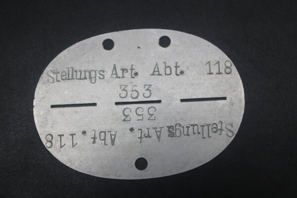 Original German Erkennungsmarke (dog tag), marked: “-353- Stellungs Art.Abt.118”