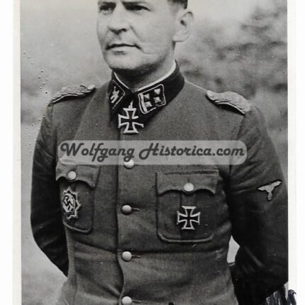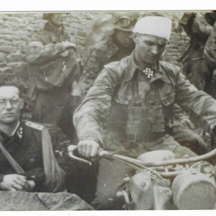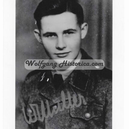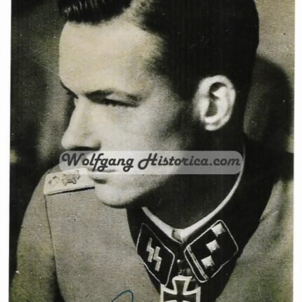 Original Postwar Signature on a Postwar Photo of Ernst Barkmann. SS-Oberscharführer Ernst Barkmann (25.08.1919 † 27.06.2009) earned the Ritterkreuz on August 27, 1944 as SS-Unterscharführer und Panzerkommandant in the 4. Kompanie/ SS-Panzer-Regiment 2 of the 2. SS-Panzer-Division “Das Reich”. Good condition. Measuring: Postcardsize.