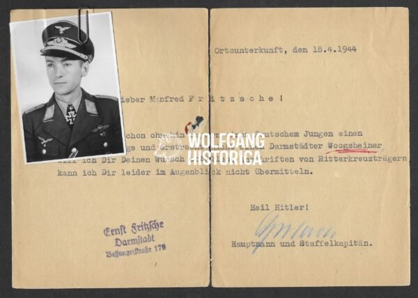 Provenance: From the large personal collection of HJ boy Ernst Fritzsche, who collected wartime autographs and correspondence during the period.