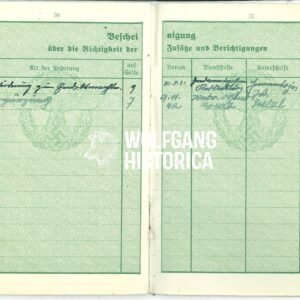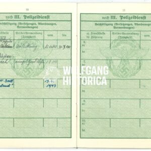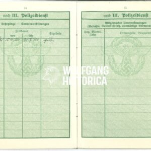 Despite his disappearance, his service was later recognized: on 30 October 1944 he was awarded the Kriegsverdienstkreuz 2. Klasse mit Schwertern. Even more remarkable, the award document is signed by SS-Obergruppenführer Erwin Rösener, one of the rarest and most sought-after senior police/SS signatures—an exceptional highlight for any collector of Polizei or SS material.