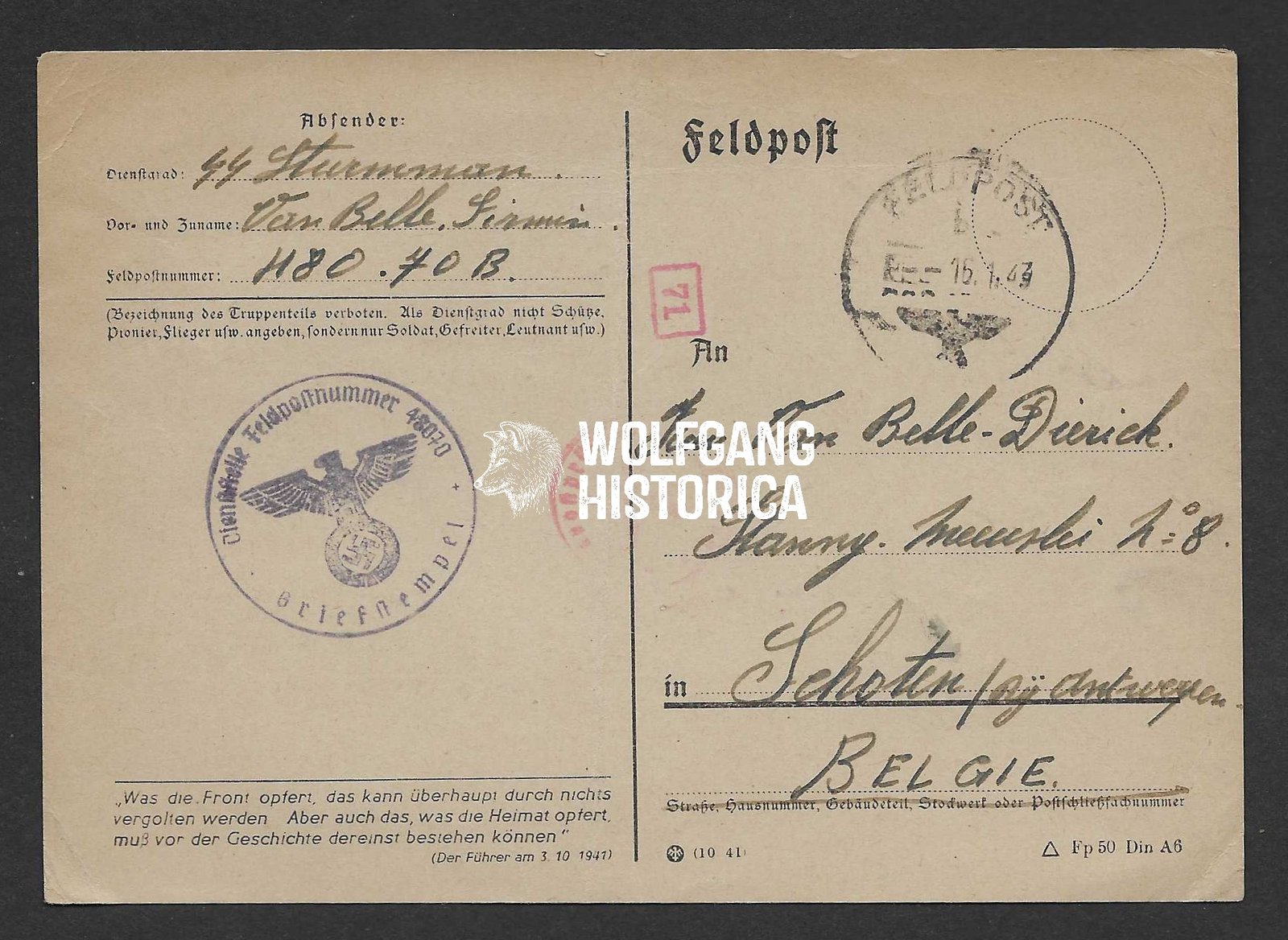 Feldpostcard of Flemish W-SS Volunteer – Firmin van Belle (Murdered while on Leave, SS-Panzer-Regiment 2)