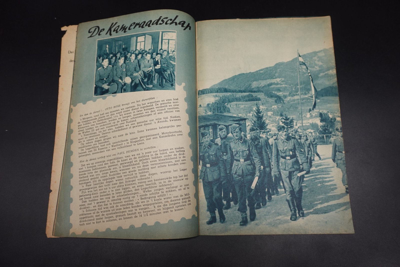Original Flemish Collaboration “Germaansche Jeugd” Booklet. Complete but the front and reverse is loose. The page I photographed, the photograph on the left, the first W-SS officer is Tony van Dyck! Condition as seen.