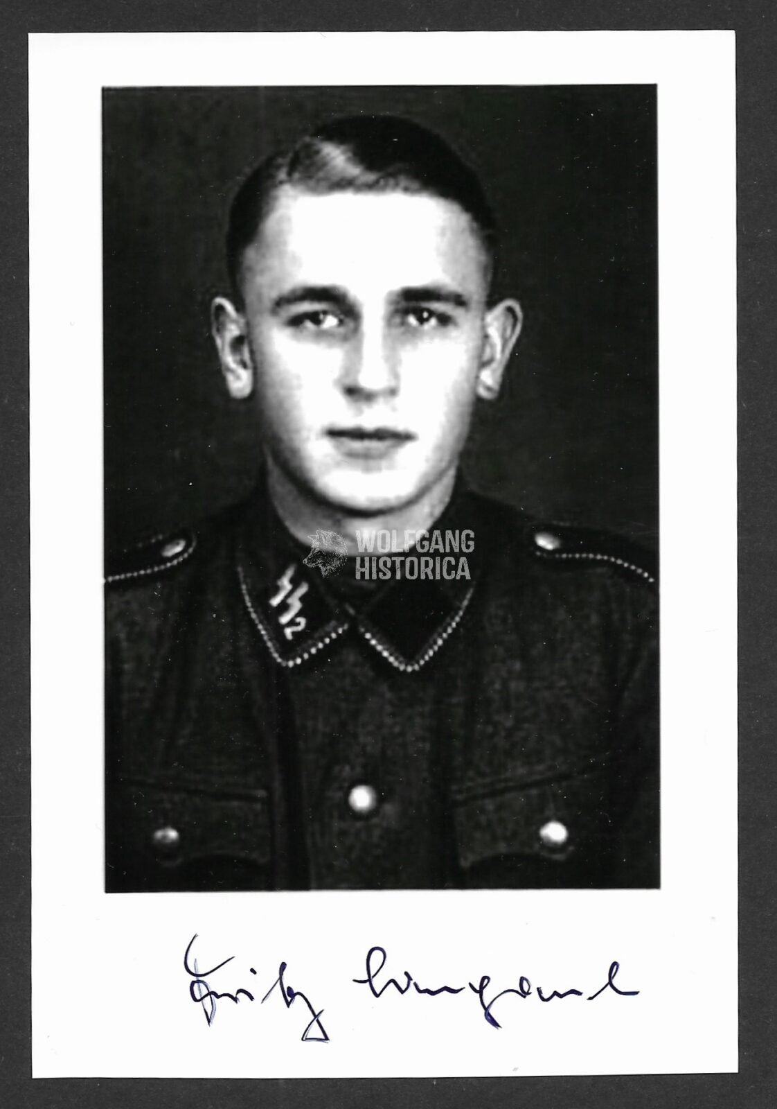 Original Postwar Signature on a Postwar Photo of Fritz Langanke. SS-Obersturmführer Fritz Langanke (15.07.1919 † 10.07.2012) earned the Ritterkreuz des Eisernen Kreuzes on August 27, 1944 as SS-Standarten-Oberjunker und Zugführer of the 2. Kompanie/ SS-Panzer-Regiment 2 of the 2. SS-Panzer-Division “Das Reich“. Postcardsize. Condition as seen.
