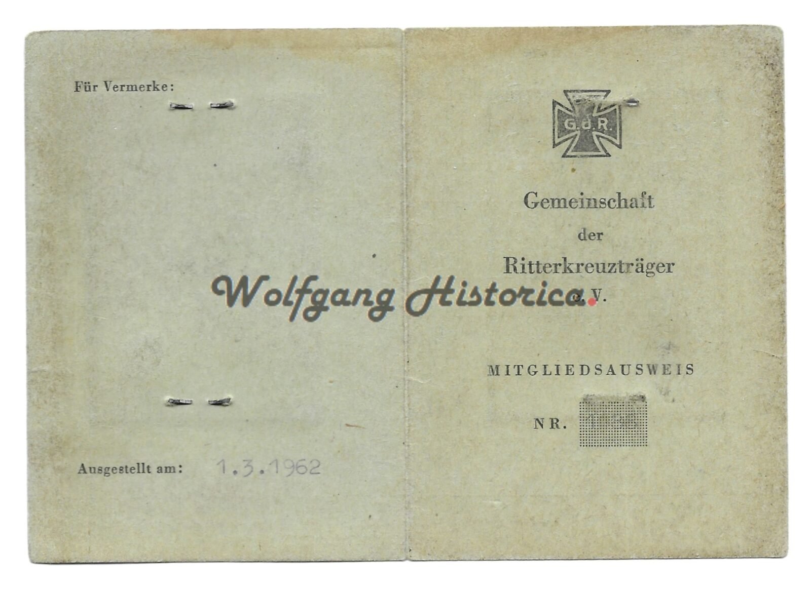 Gemeinschaft der Ritterkreuzträger – Membership Card of Josef Schuß (RK)