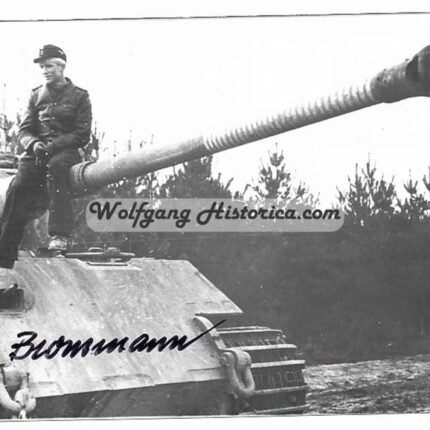 Original Scarce Postwar Signature on a Postwar Photo of Georg Diers. SS-Unterscharführer Georg Diers served with the schwere SS-Panzer-Abteilung 503 during the Battle of Berlin as commander of a Königstiger (King Tiger). Good condition. Postcardsize.