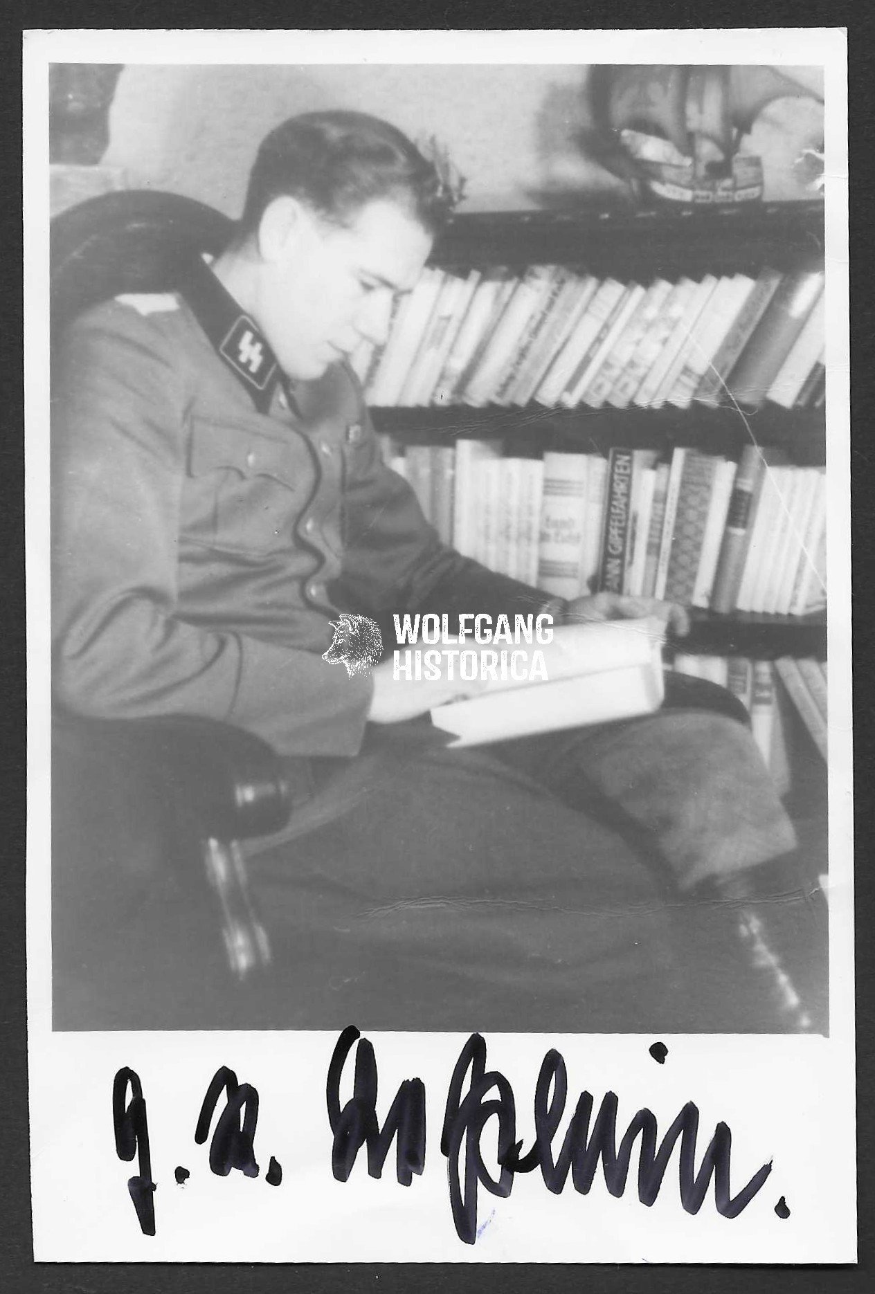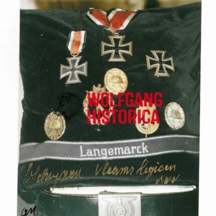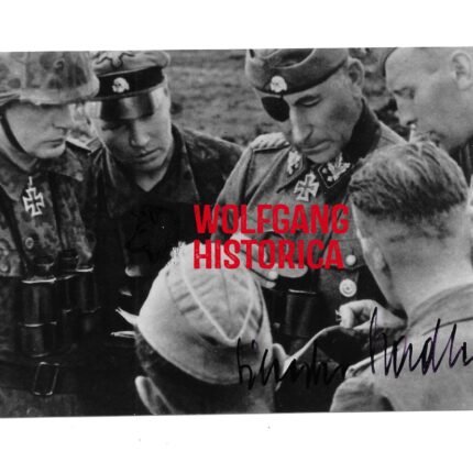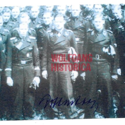 Original Postwar Signature on a Postwar Photo of Georg Robert Besslein. SS-Obersturmbannführer Georg Robert Besslein (14.12.1911 † 27.04.1993) earned the Ritterkreuz on April 30, 1945 as SS-Obersturmbannführer und Kommandeur of SS-Festungs-Grenadier-Regiment “Besslein” i.d. Festung Breslau. One extra photo but unsigned. Postcardsize.