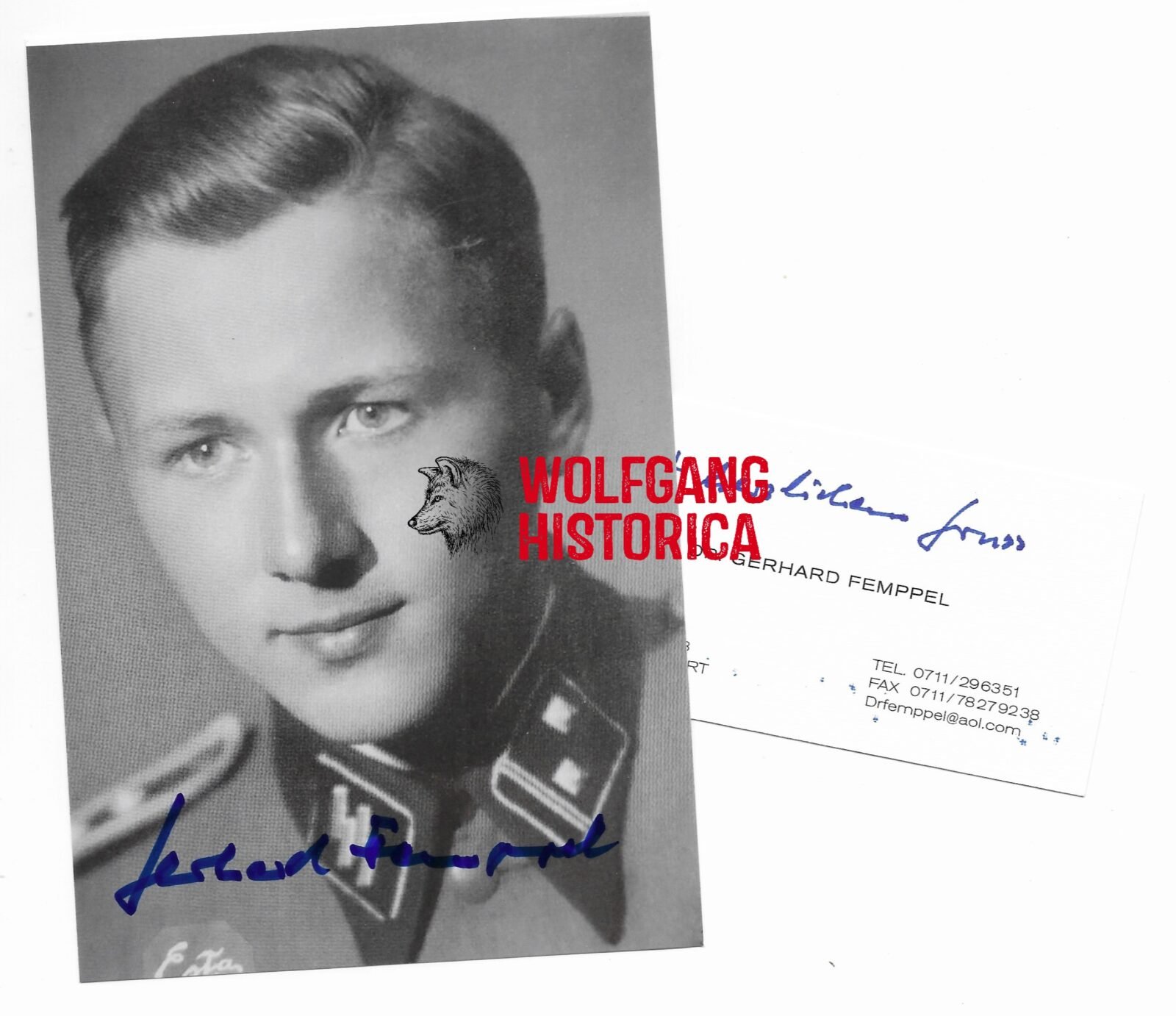 Original Postwar Signature on a Postwar Photo of Dr. Gerhard Femppel. SS-Untersturmführer Gerhard Femppel (27.11.1925-) served with the 2. Kompanie/ SS-Panzer-Pionier-Bataillon 2 of the 2. SS-Panzer-Division “Das Reich”. He fought in the Ardennes Offensive, Hungary..