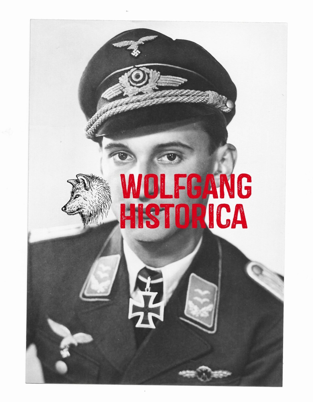 Original Postwar Signature on a Postwar Photo of Gerhard Krems. Oberleutnant Gerhard Krems (04.05.1920 in Dresden † 12.02.2017 in Berlin) earned the Ritterkreuz des Eisernen Kreuzes on May 25, 1942 as Oberleutnant und Flugzeugführer in the 2. Staffel/ Kampfgeschwader 27 “Boelcke”.