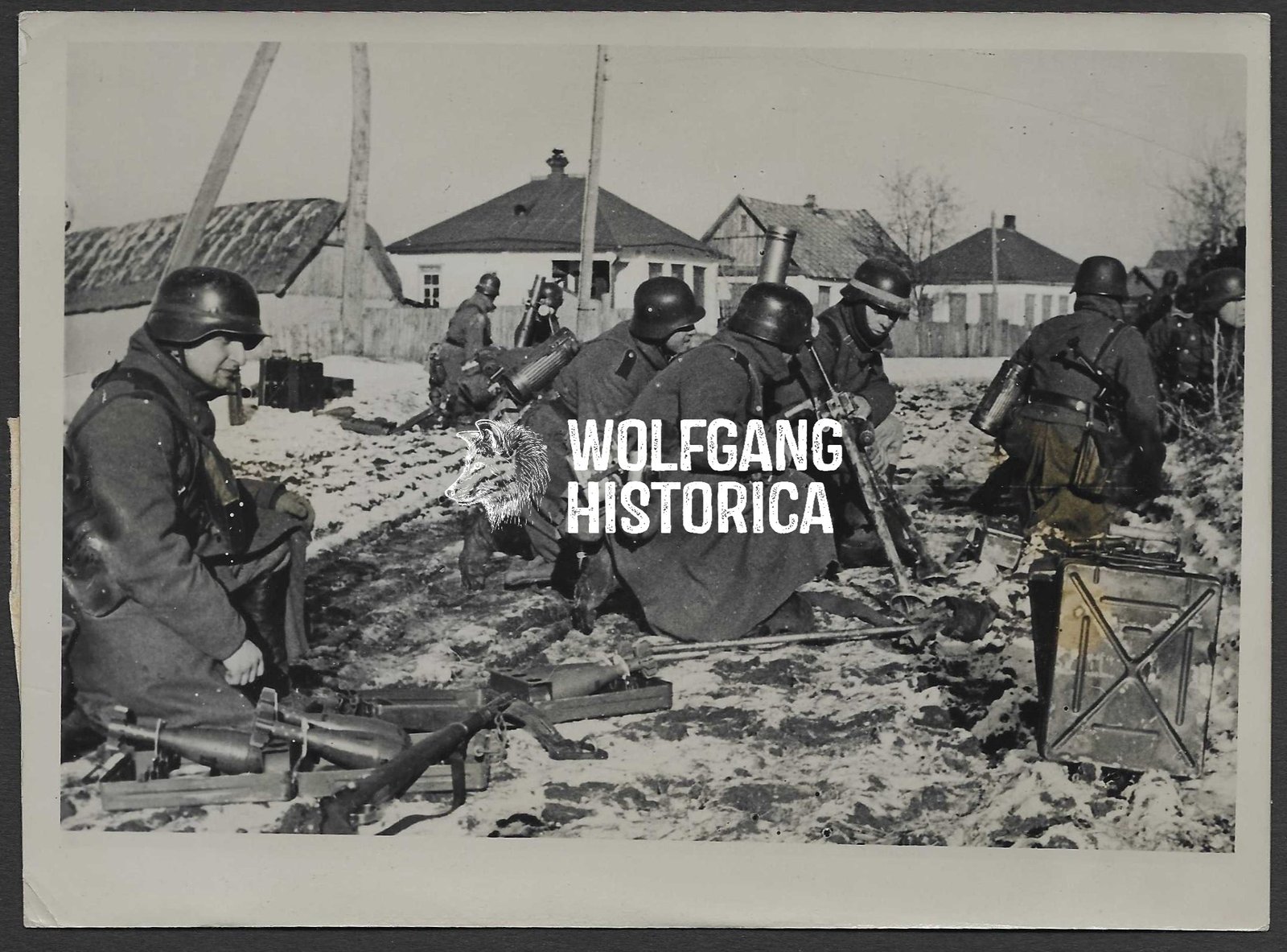 Original German Press Photo of schwere Granatwerfer nach Vorn. Size: 13x18cm. Condition as seen.