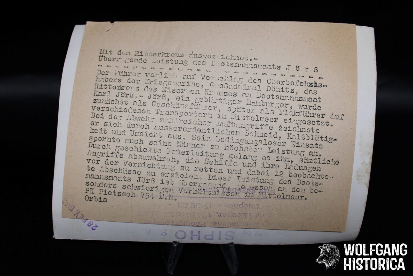 Original German Press Photograph showing Bootsmannmaat Karl Jörß! Size 18x13cm. Condition as seen.