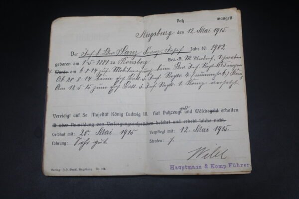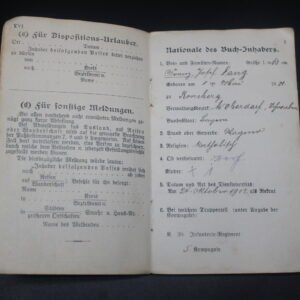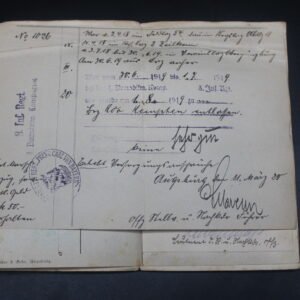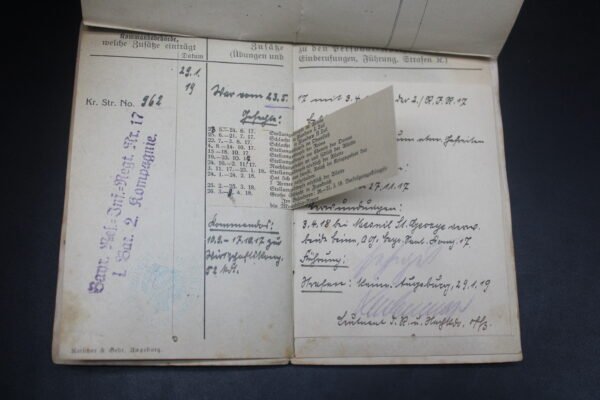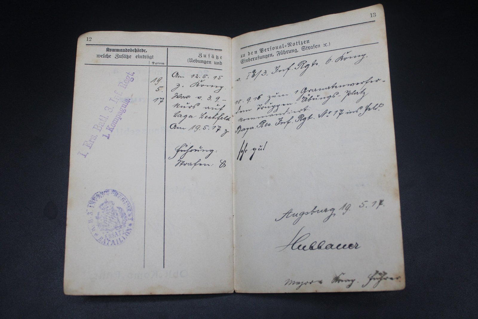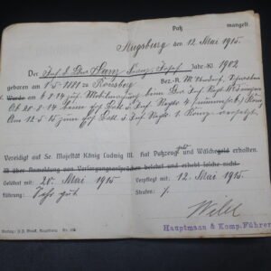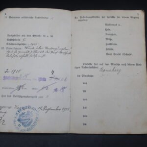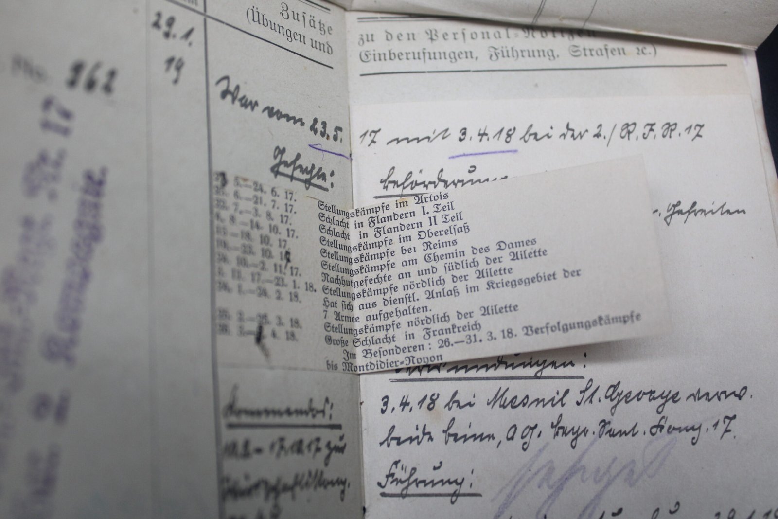 This original Militärpass documents the frontline career of Franz Josef Lanz, an infantryman who fought across multiple key battles of the Western Front and was wounded in the climactic fighting of 1918. His service in the Bavarian RIR 17, a regiment tied to some of the most desperate actions of the war, makes this a highly desirable researchable piece for collectors of WWI Bavarian regiments and frontline infantry service.