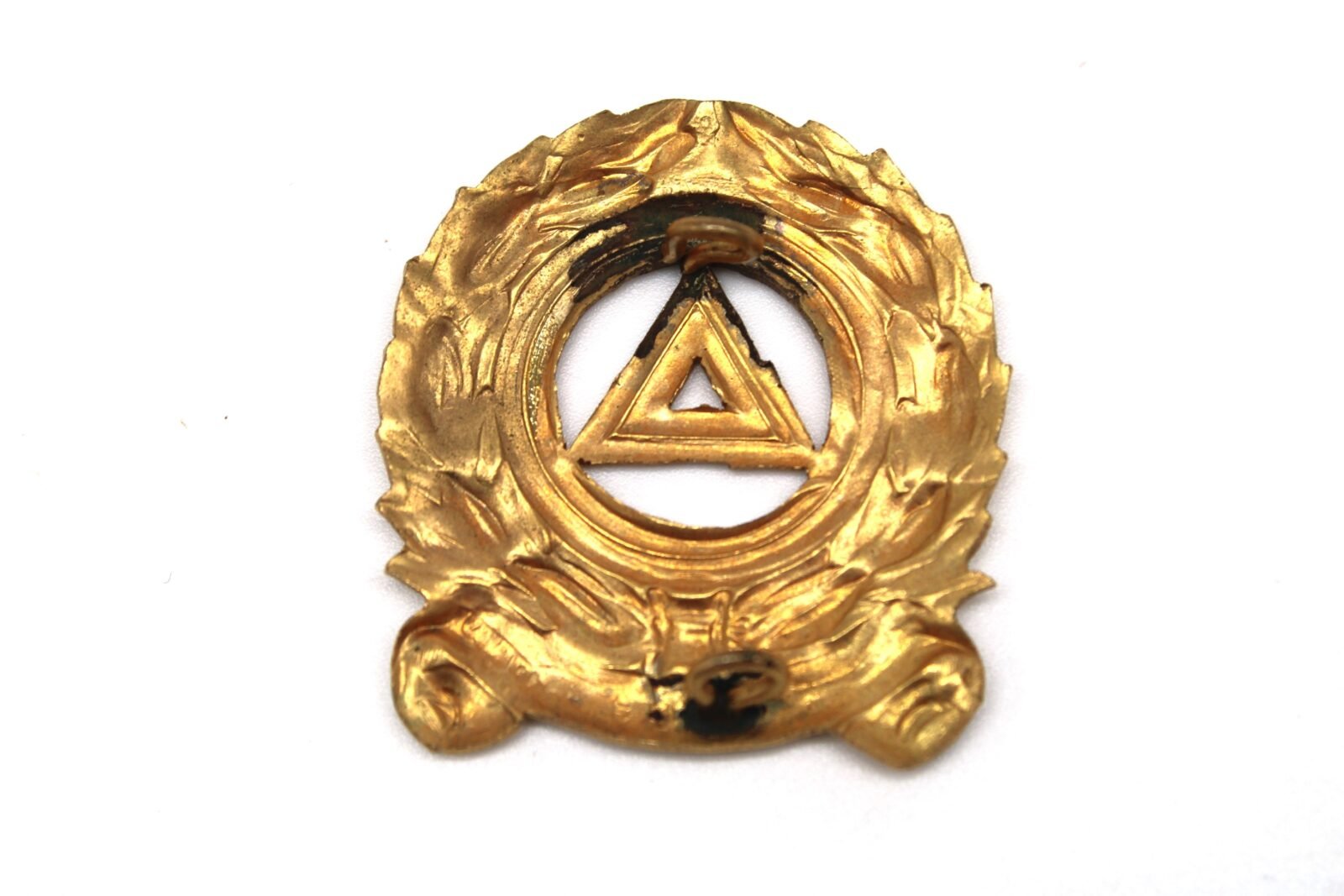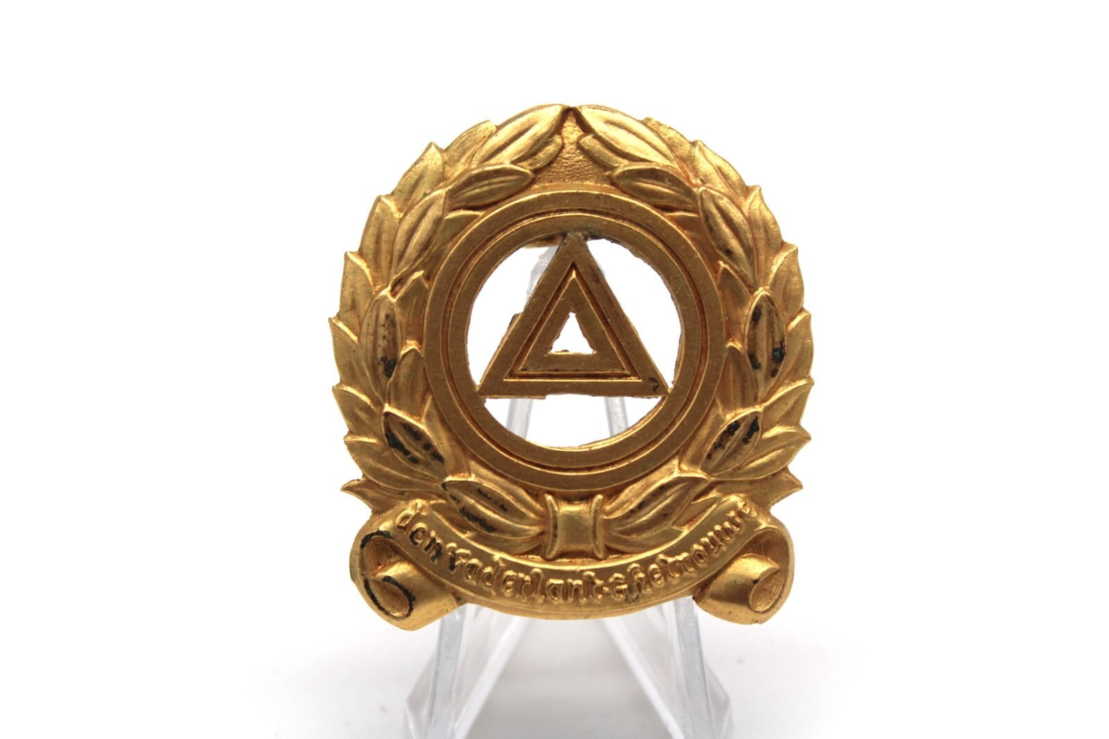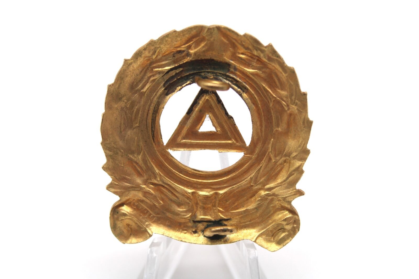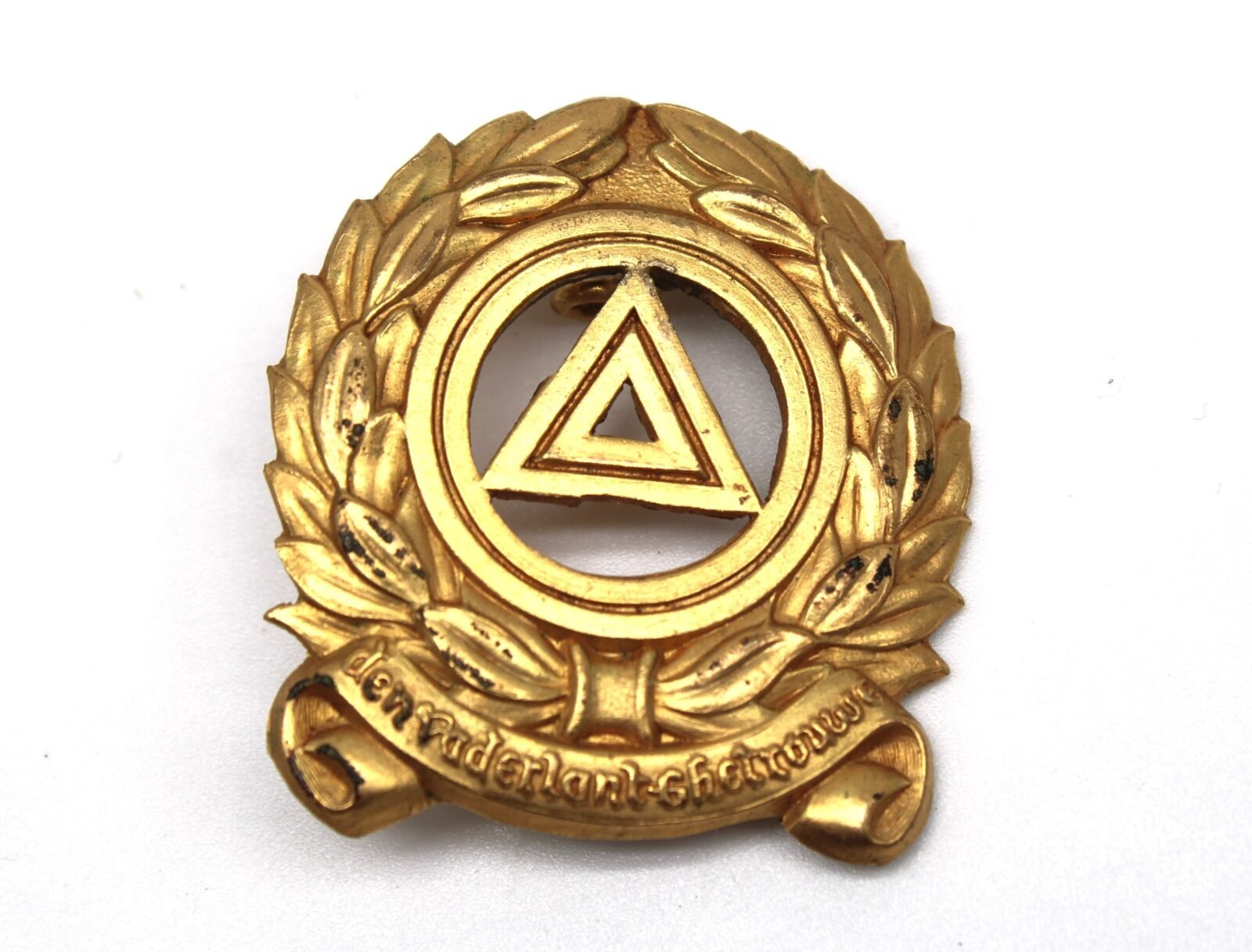 Original Flemish Gouden VNV-Trouwkenteken (Golden VNV-Loyalty-Badge). Design features a dubbel triangle (Delta) surrounded with oakleaves with underneath the text “Den vaderland ghetrouwe”. Measures: 3,8cm.