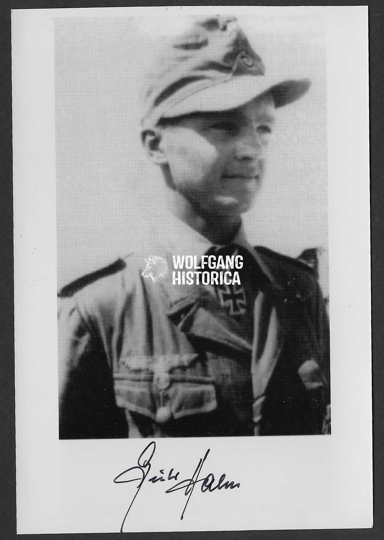 Halm’s autograph is especially desirable as he was one of the youngest and most famous Knight’s Cross recipients of the Afrika Korps, tied to the legendary battles of El Alamein. His signature offers a direct link to the Panzergrenadiers and anti-tank defenders of Rommel’s desert army.