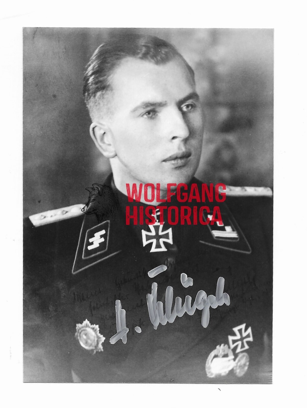 Original Postwar Signature on a Postwar Photo of Hans Flügel. SS-Sturmbannführer Hans Flügel (13.02.1919 † 01.03.1989) earned the Ritterkreuz on October 16, 1944 as SS-Hauptsturmführer und Führer of the II. Abteilung/ SS-Panzer-Regiment 5 of the 5. SS-Panzer-Division “Wiking”. Good condition. Good condition.