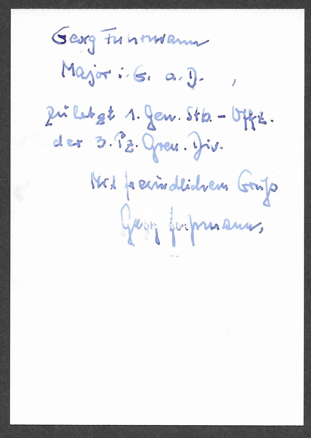 Original Postwar Signature on a Postwar Photo of Hans-Georg Fuhrmann