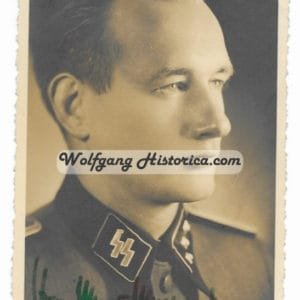 Postwar Signature of Hans-Werner Woltersdorf, Veteran of the SS-Panzerjäger-Abteilung 2 “Das Reich”. Author of “Gods of War” and also his memoirs are covered in the Nr. 6 Book of Pierre Tiquet “SS.Pz.Jag.Abt.2”. I sell the photograph as a postwar copy, as I’m uncertain of authenticity.