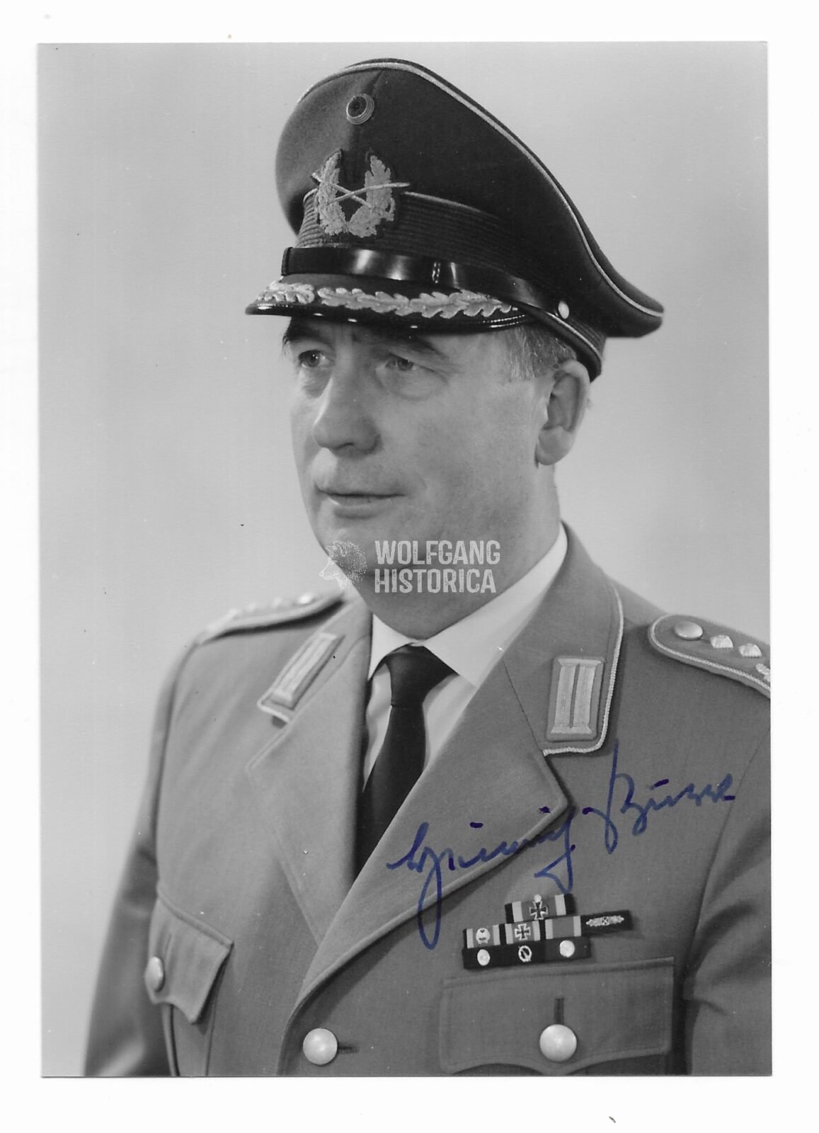 Original Postwar Signature on a Postwar Photo of Heinrich Busse. Oberstleutnant Heinrich Busse (10.04.1909 † 06.11.1998) earned the Ritterkreuz des Eisernen Kreuzes on March 26, 1944 as Major und Kommandeur of the Divisions-Füsilier-Bataillon 328 of the 306. Infanterie-Division and the Eichenlaub on October 28, 1944 as Oberstleutnant und Kommandeur of Grenadier-Regiment 203 of the 76. Infanterie-Division.