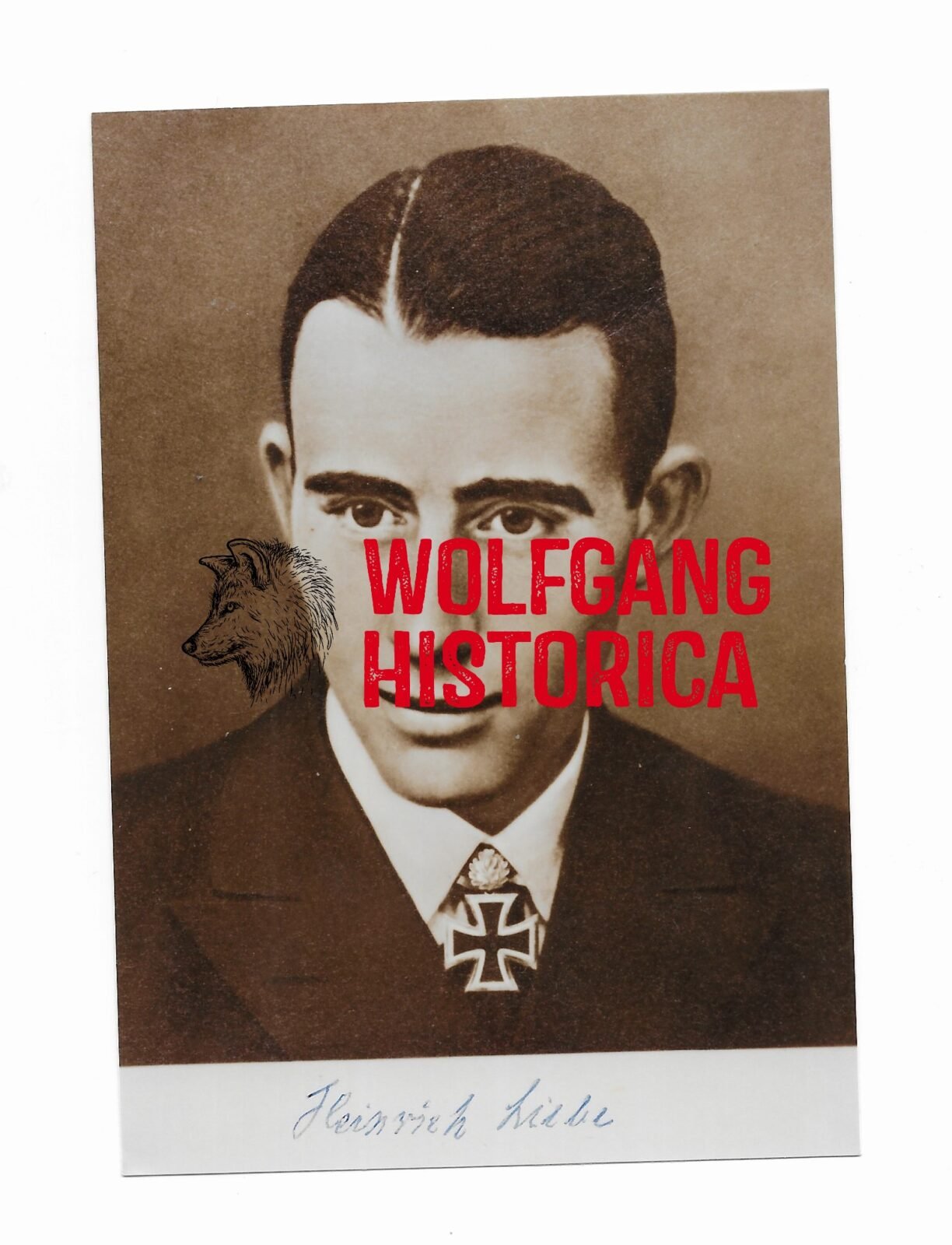 Original Postwar Signature on a Postwar Photo of Heinrich Liebe. Fregattenkapitän Heinrich Liebe (29.01.1908 † 27.07.1997) earned the Ritterkreuz des Eisernen Kreuzes on August 14, 1940 as Kapitänleutnant und Kommandant of the U-Boot “U-38” and the Eichenlaub on June 10, 1941 as Kapitänleutnant und Kommandant of the U-Boot “U-38”.