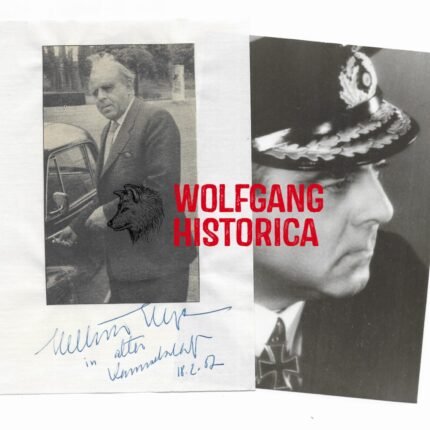 Postwar Signature of Hellmuth Heye (on a original postwar photograph in civil unlike a reprint of a wartime photograph) on the backside. The signature on the letter is that of someone else responding to the inquiry to obtain a signature of Heye (and tells Heye is very busy but that he attached a photograph with Heye’s signature).