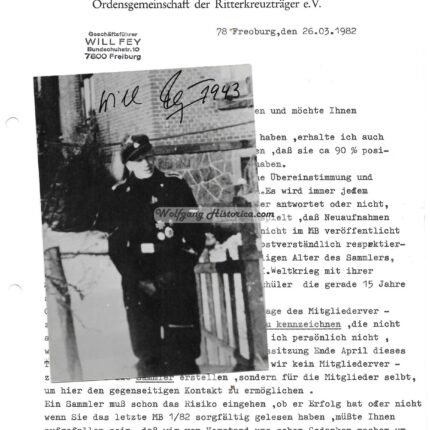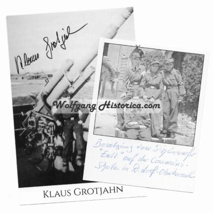 Original Postwar Signature on a Postwar Photocopy of Henri Fenet. SS-Hauptsturmführer Henri Fenet (11.07.1919 † 14.09.2002) earned the Ritterkreuz on April 29, 1945 as SS-Hauptsturmführer und Führer of the Sturm-Bataillon der 33. SS-Freiwillige-Grenadier-Division “Charlemagne”. Henri Fenet was the sole French Waffen-SS Volunteer to be decorated with the Knight’s Cross. Good condition. Signed on the reverse, front is a print.