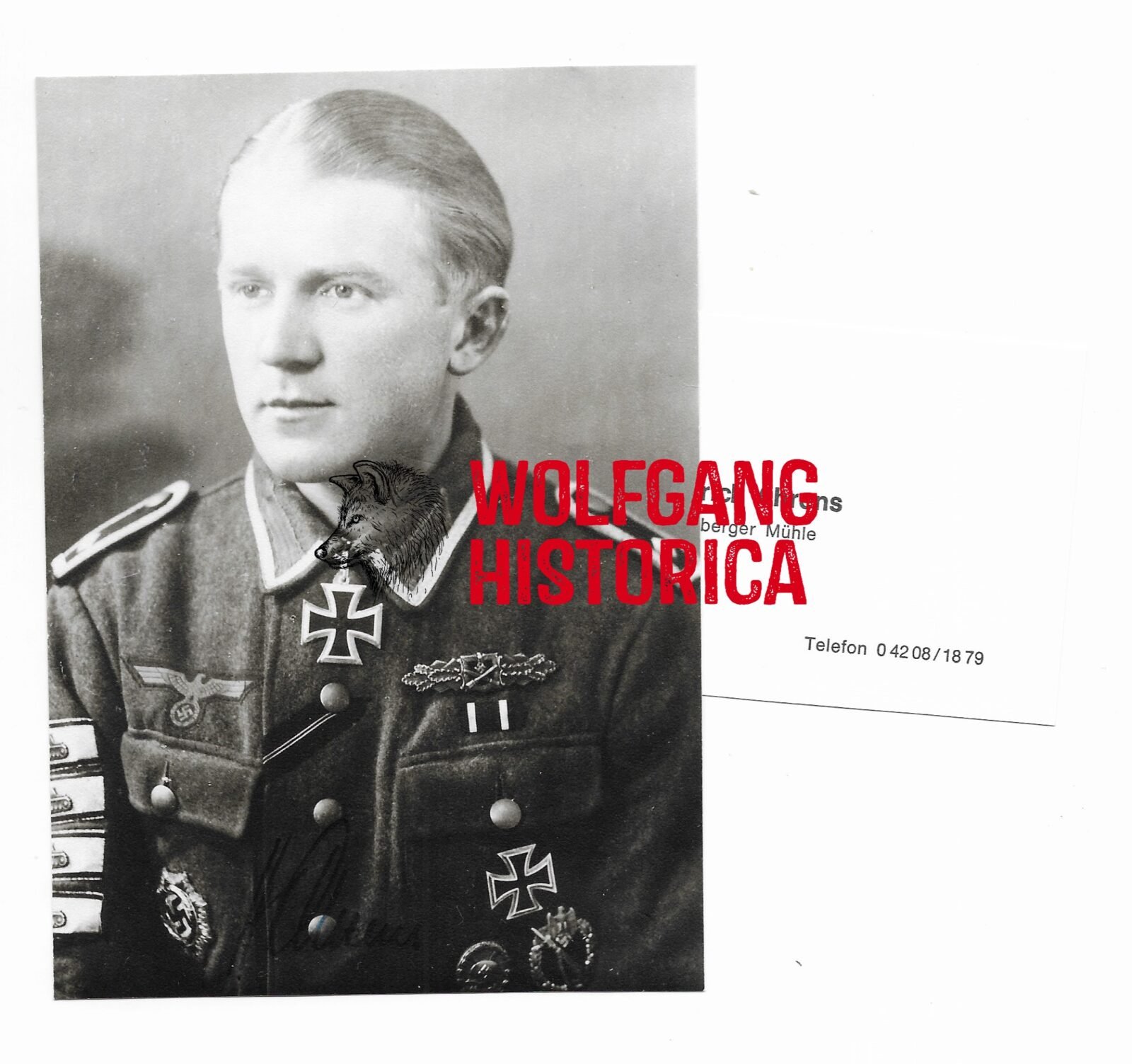 Original Postwar Signature on a Postwar Photo of Hinrich Ahrens. Unteroffizier Hinrich Ahrens (15.03.1921 † 31.12.2009) earned the Ritterkreuz des Eisernen Kreuzes on January 9, 1945 as Unteroffizier und Zugführer in the 13. Kompanie/ Grenadier-Regiment 1141 of the 561. Volksgrenadier-Division.