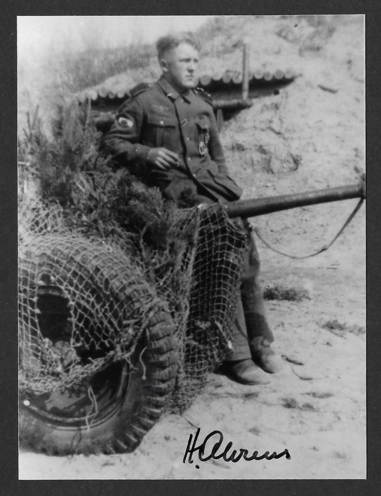 Original Postwar Signature on a Postwar Photo of Hinrich Ahrens. Unteroffizier Hinrich Ahrens (15.03.1921 † 31.12.2009) earned the Ritterkreuz des Eisernen Kreuzes on January 9, 1945 as Unteroffizier und Zugführer in the 13. Kompanie/ Grenadier-Regiment 1141 of the 561. Volksgrenadier-Division. Postcardsize. Condition as seen.