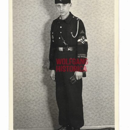 Small set of two (ID sized) photos from a youngster and girl of the Hitlerjugend & Bund Deutscher Mädel. A larger picture comes also of the boy. The smaller size photos bear the same studio mark. Could it be brother and sister?
