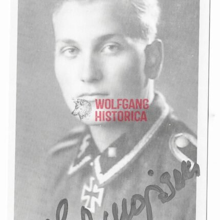 Original Postwar Signature on a Postwar Photo of Hugo Eichhorn. SS-Obersturmbannführer Hugo Eichhorn (11.02.1911 † 27.05.1992) earned the Ritterkreuz des Eisernen Kreuzes on January 15, 1943 as SS-Hauptsturmführer with the Stab/ S-Panzer-Pionier-Bataillon 5 of the 5. SS-Panzer-Division “Wiking”.