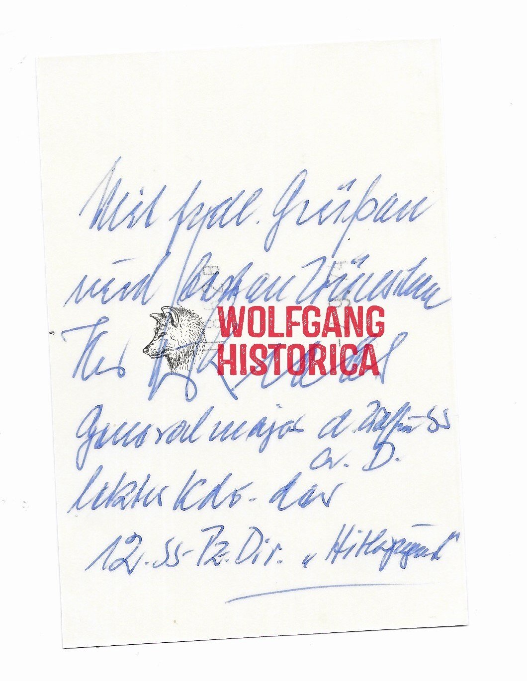 Provenance: This signature comes from one of the largest postwar signature collection I’ve ever commissioned. This collection was started by a Waffen-SS Veteran, Werner H., in the 1950’s until he passed away.