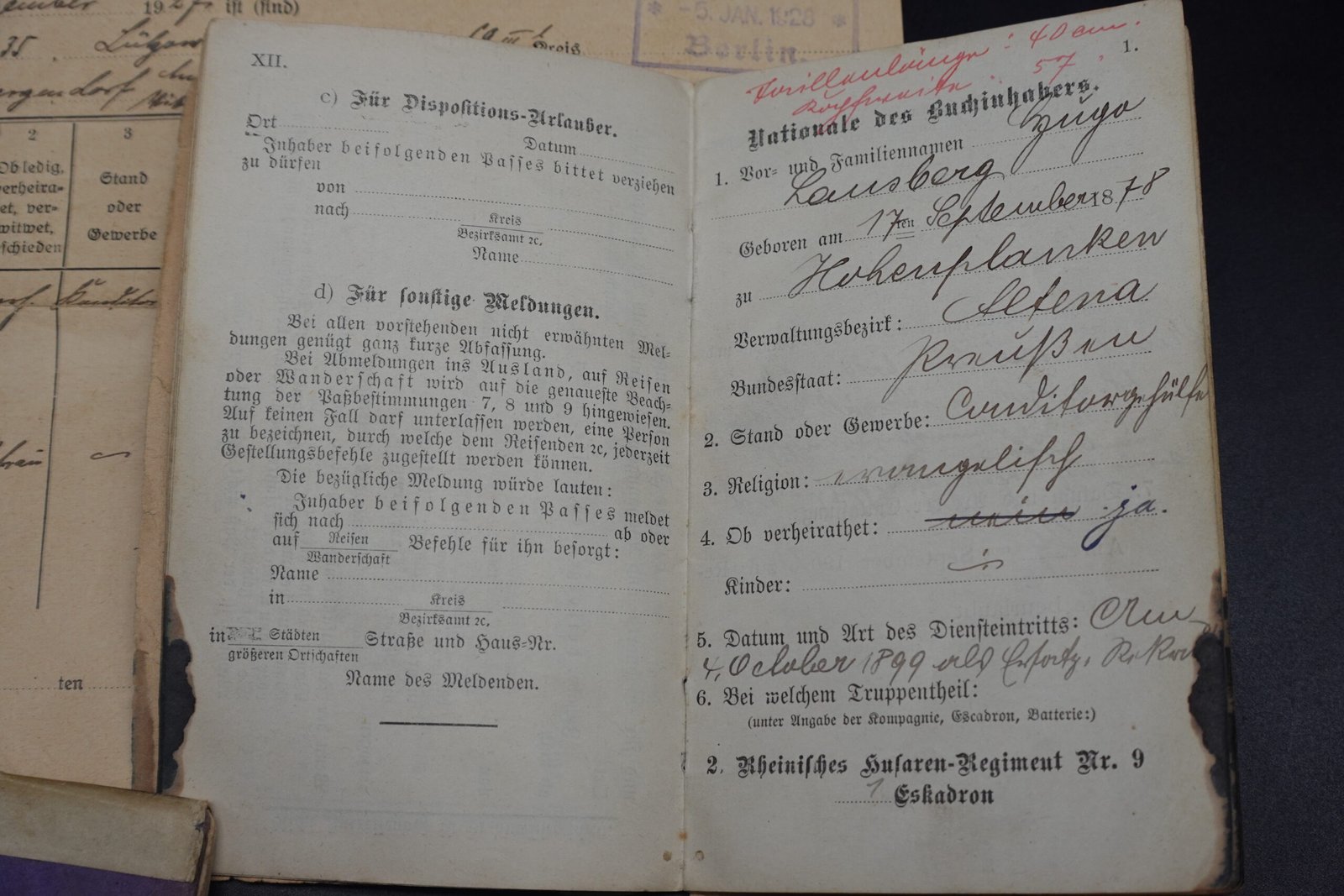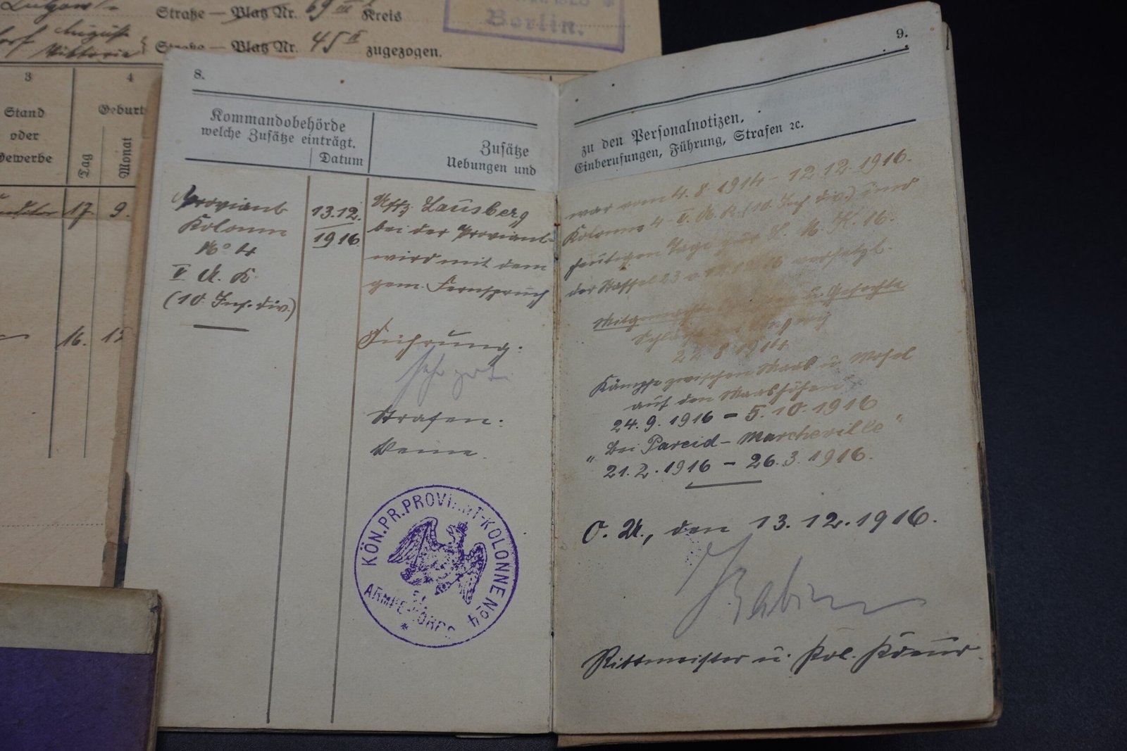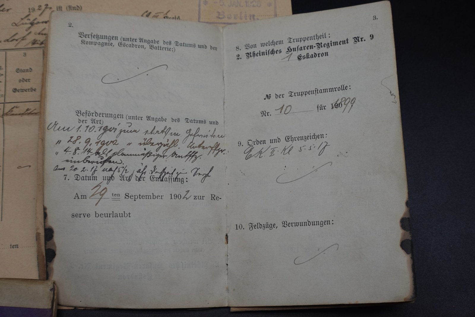 A highly attractive Militärpaß with excellent historical depth, combining cavalry origins, frontline Western Front service, an Iron Cross award, and postwar continuity. An outstanding piece for collectors of Imperial German documents, EK recipients, or Western Front veterans.