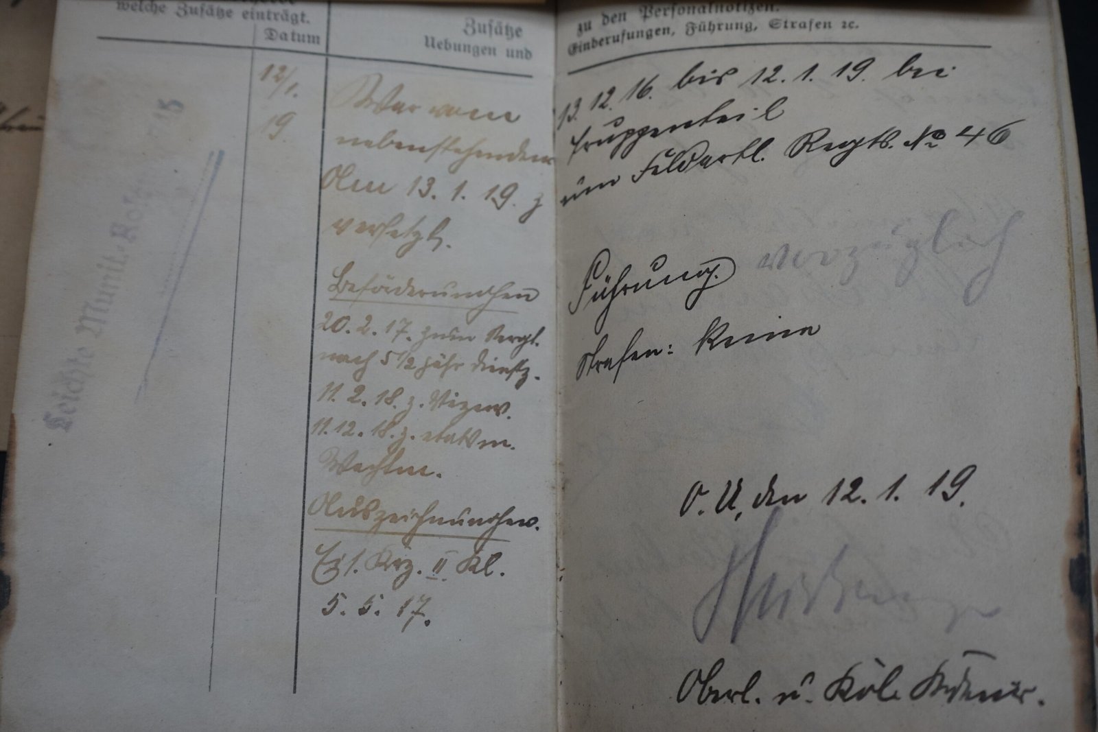 Following the armistice, his Militärpaß records continued service from 13 January 1919 with Feldartillerie-Regiment 46, placing him among the transitional forces during the turbulent postwar period.