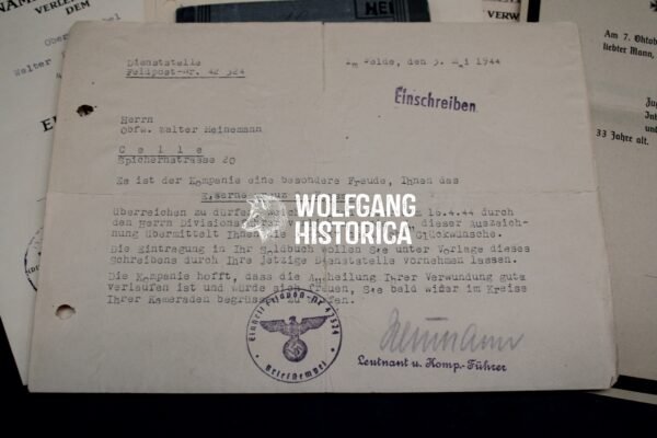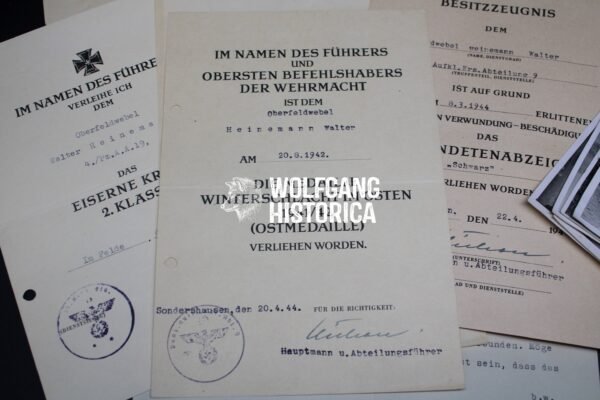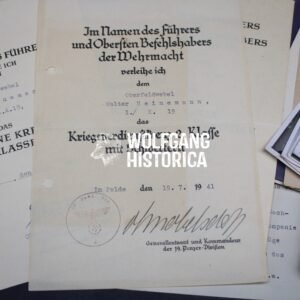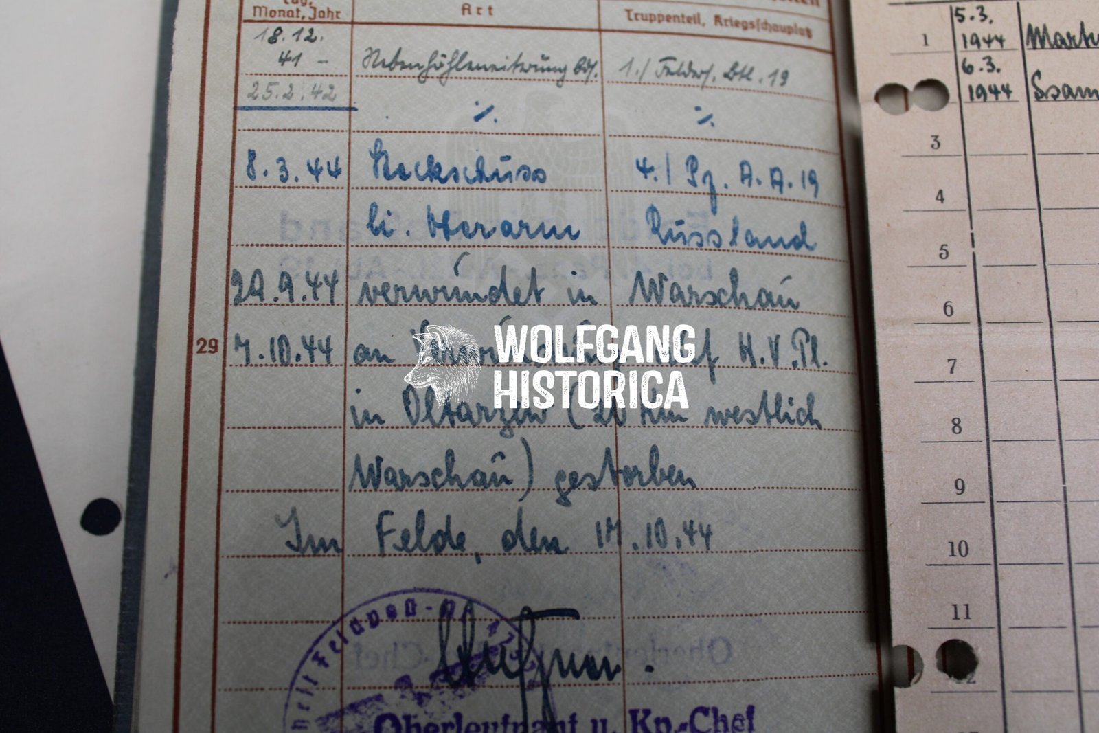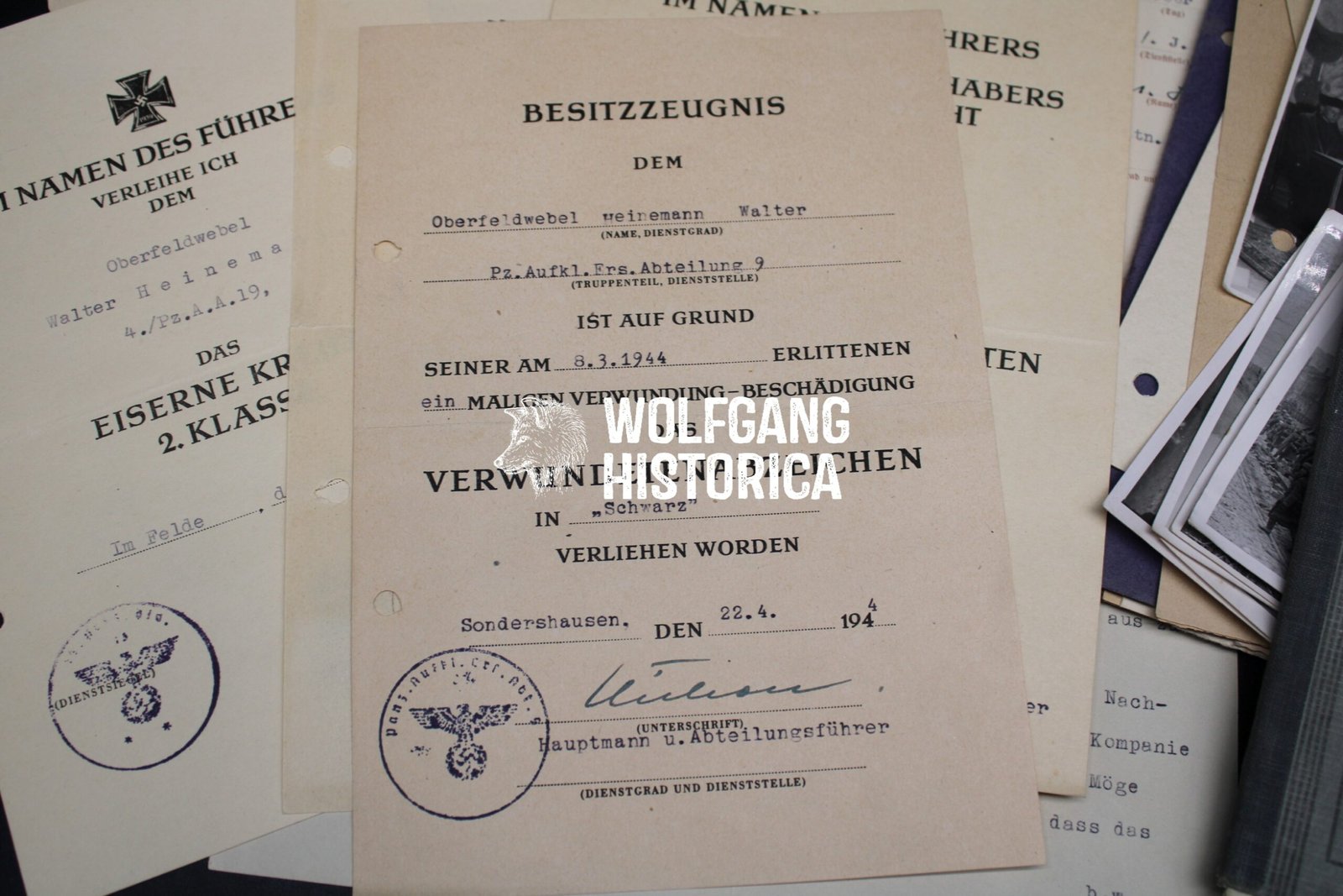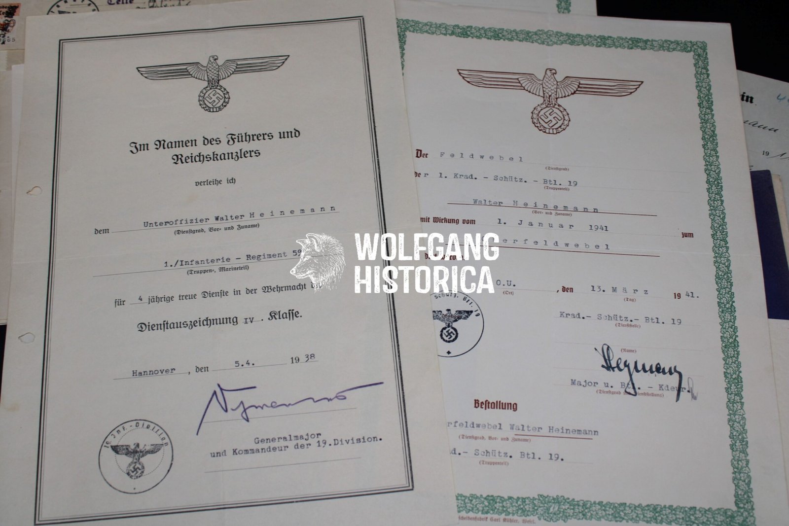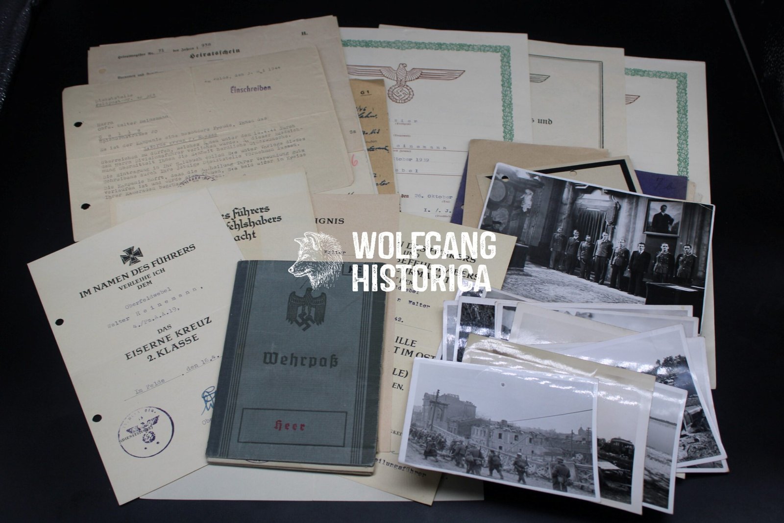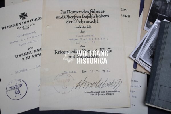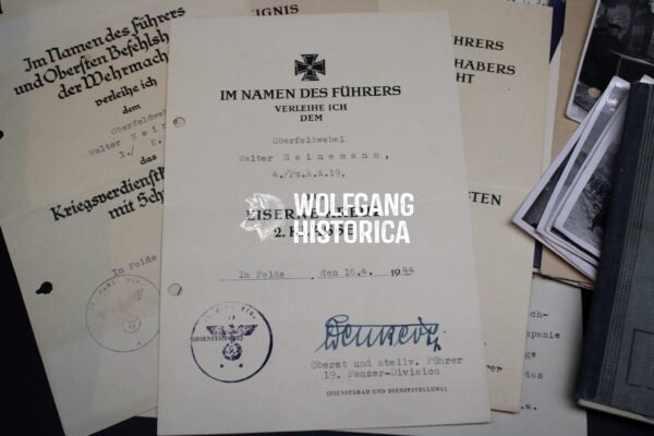 A poignant and historically important grouping to Oberfeldwebel Heinemann, a veteran NCO of the 2. Kompanie / Panzer-Aufklärungs-Abteilung 19, 19. Panzer-Division, who was mortally wounded in combat during the ferocious fighting of the Warsaw Uprising.