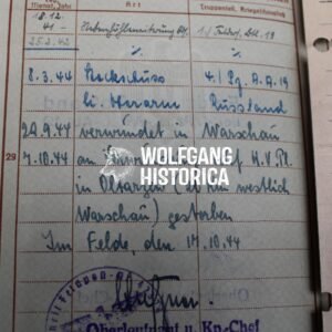 Heinemann was severely wounded on 29 September 1944 in Warsaw during the unit’s brutal house-to-house fighting to crush the Polish resistance. Despite medical treatment, he succumbed to his wounds on 7 October 1944. The 19. Panzer-Division had been redeployed into the city specifically to combat the uprising, and its Panzer-Aufklärer fought deep into the heart of Warsaw.