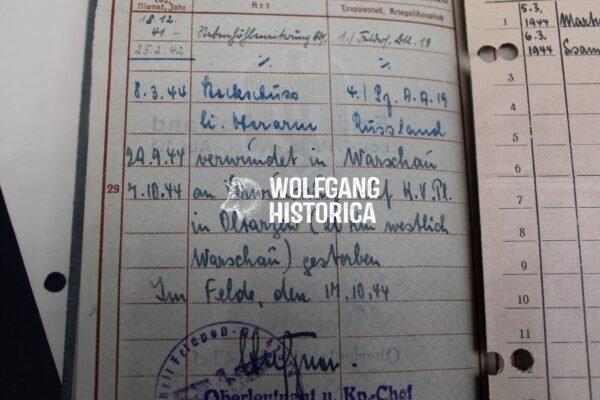 Groupings to soldiers killed during the Warsaw Uprising are extremely scarce. This set not only connects directly to the historically significant and politically charged events of late 1944 but also represents a decorated veteran NCO of an elite Panzer-Aufklärungs unit engaged in some of the most intense urban combat of WWII.