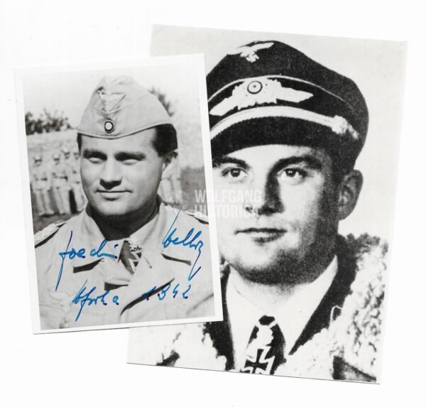 Original Postwar Signature on a Postwar Photo of Joachim Helbig. Oberst Joachim Helbig (10.09.1915 † 05.10.1985) earned the Ritterkreuz des Eisernen Kreuzes on November 24, 1940 as Hauptmann und Staffelkapitän of the 4. Staffel/ Lehrgeschwader 1, the Eichenlaub on January 16, 1942 as Hauptmann und Kommandeur of the I. Gruppe/ Lehrgeschwader 1 and the Schwertern on September 28, 1942 as Hauptmann und Kommandeur of the I. Gruppe/ Lehrgeschwader 1.
