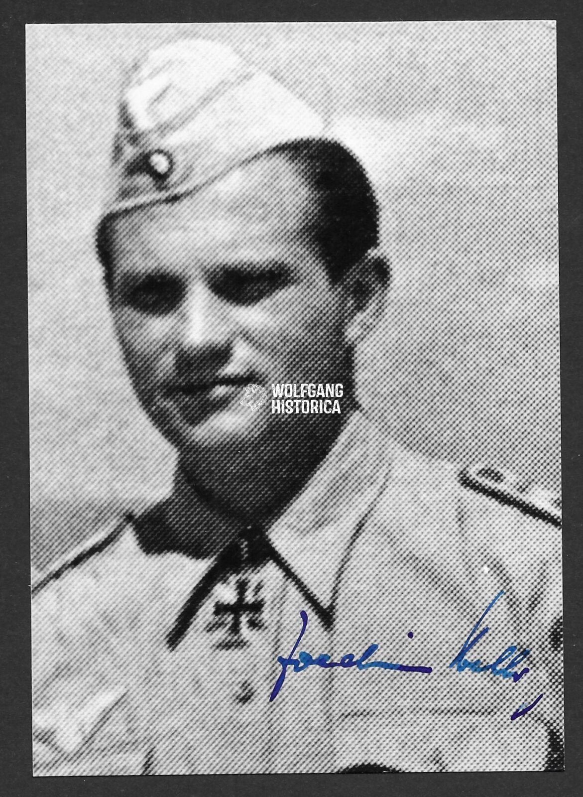 Original Postwar Signature on a Postwar Photo of Joachim Helbig. Oberst Joachim Helbig (10.09.1915 † 05.10.1985) earned the Ritterkreuz des Eisernen Kreuzes on November 24, 1940 as Hauptmann und Staffelkapitän of the 4. Staffel/ Lehrgeschwader 1, the Eichenlaub on January 16, 1942 as Hauptmann und Kommandeur of the I. Gruppe/ Lehrgeschwader 1 and the Schwertern on September 28, 1942 as Hauptmann und Kommandeur of the I. Gruppe/ Lehrgeschwader 1. Condition as seen. Postcardsize.