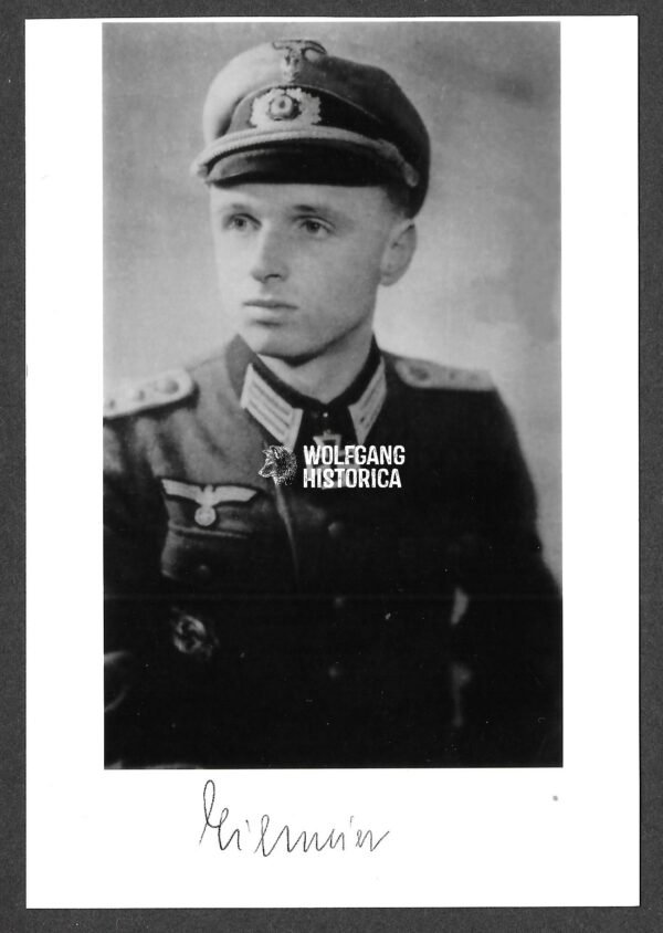 Although signed on a photocopy rather than an original wartime photograph, this piece remains a desirable signature of a Ritterkreuzträger who served in both reconnaissance and cavalry formations. Eikmeier’s long life makes his autograph obtainable, yet his dual awards — Deutsches Kreuz in Gold and Ritterkreuz — ensure continued collector interest.
