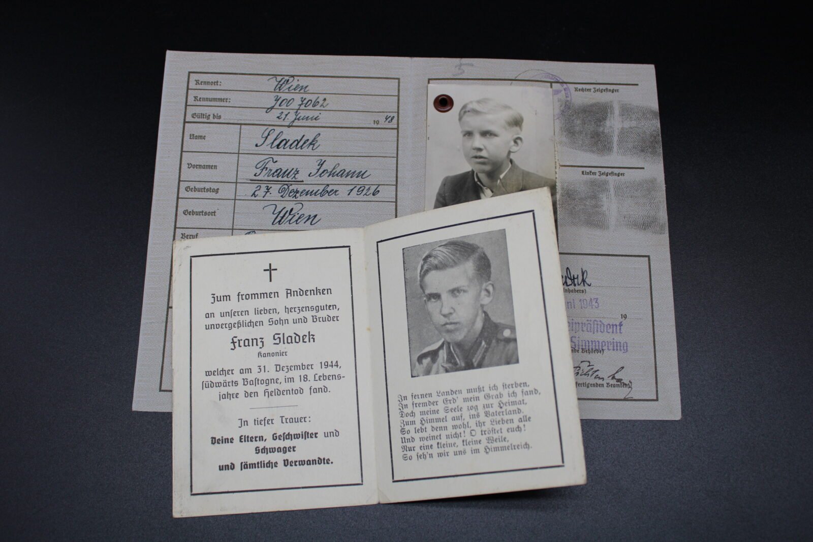 Kennkarte & Death Card of Soldier KIA in Bastogne on December 31, 1944