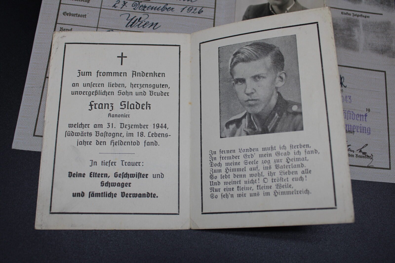 Original Kennkarte & Death Card of Soldier KIA in Bastogne on December 31, 1944. Condition as seen.