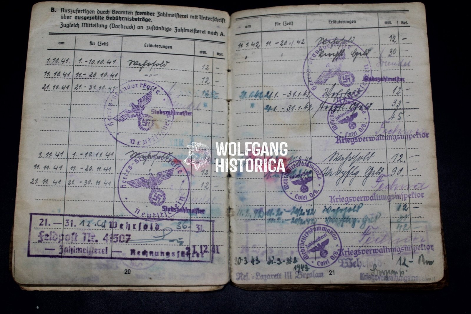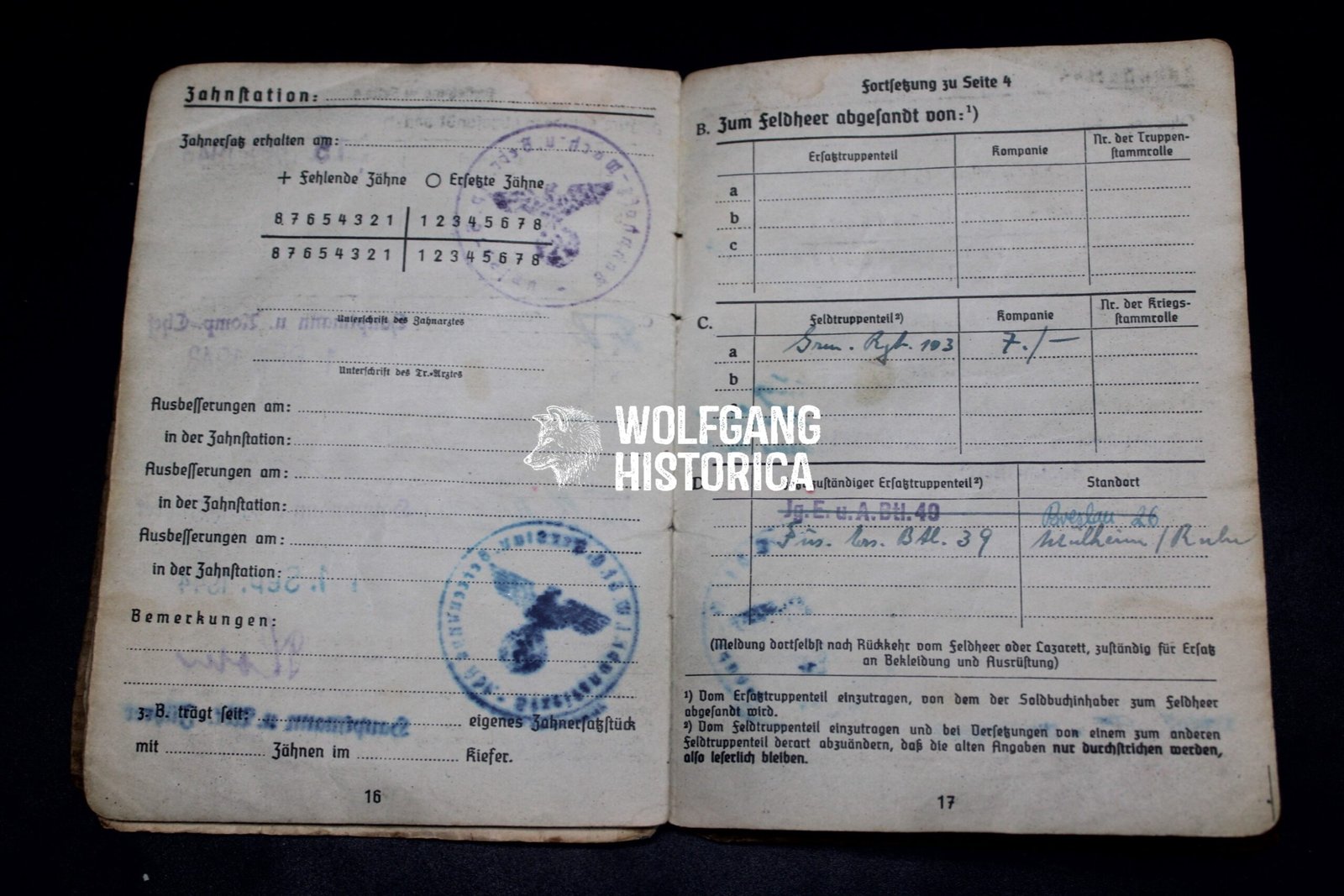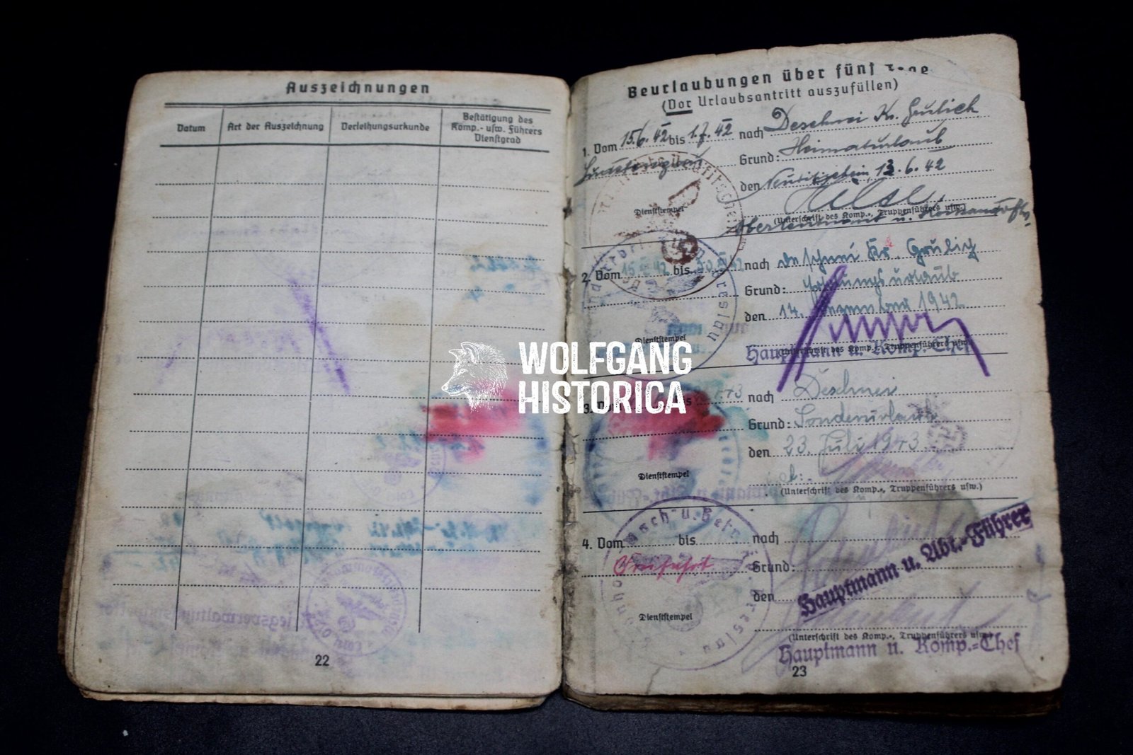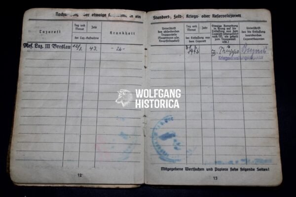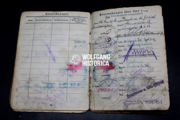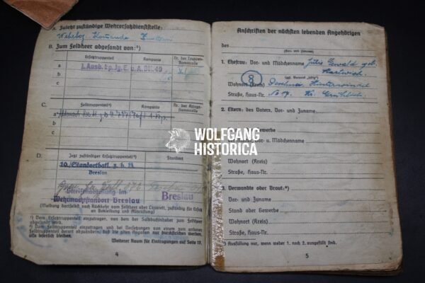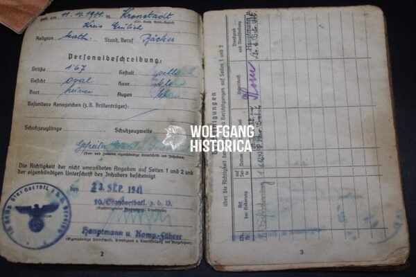 Original wartime Soldbuch issued to Friedrich Gewald, who later attained the rank of Obergefreiter.