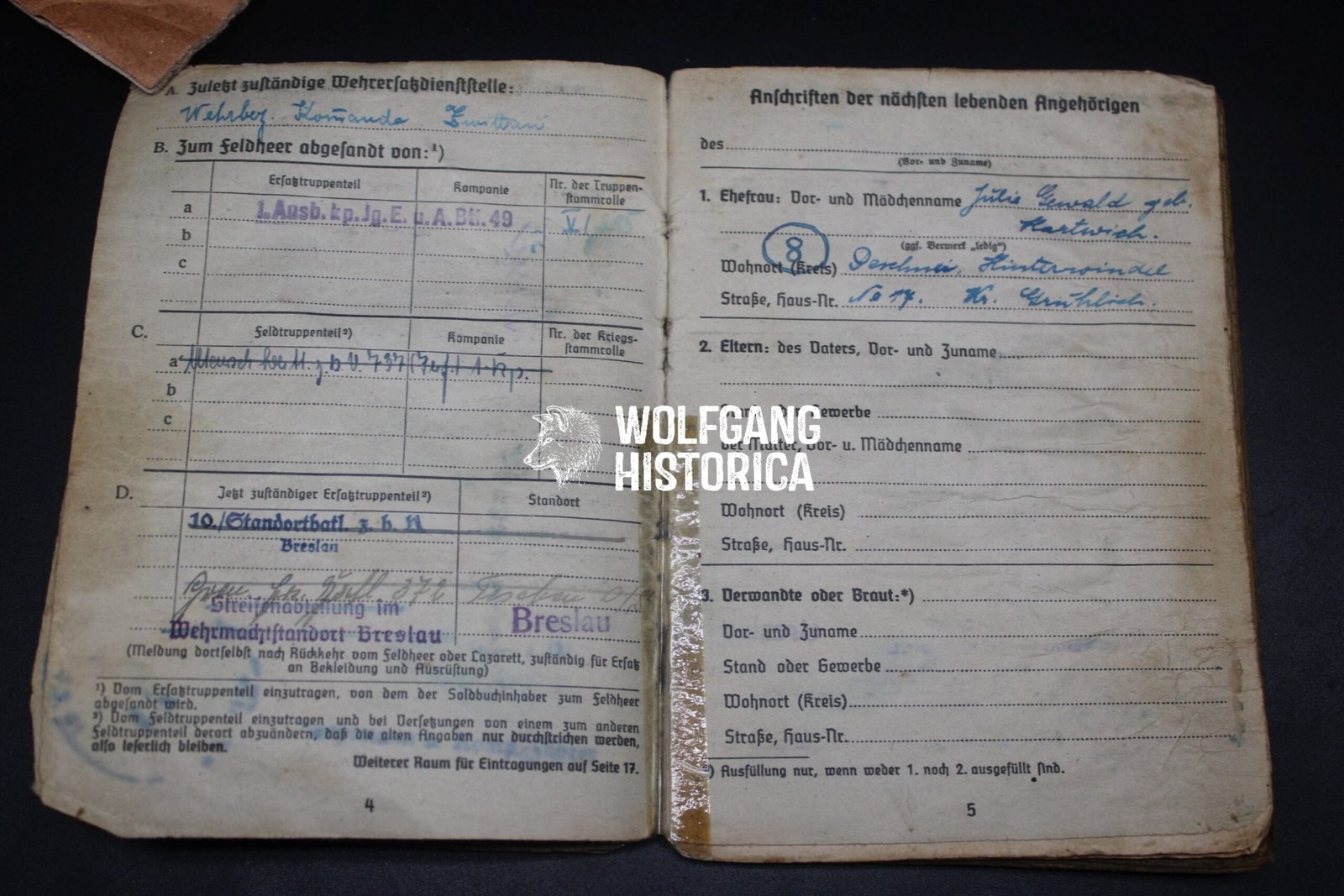 Initial Service: Standortbataillon Breslau.