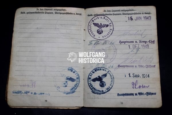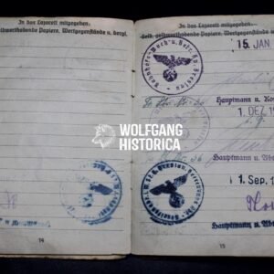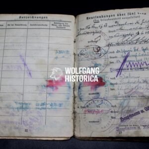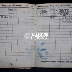 This Soldbuch offers a poignant glimpse into the service of an ordinary German infantryman during the final phase of WWII. With a clear service record culminating in the bitter Düren battles, the document is not only a personal artifact but also a piece of frontline history tied to one of the last-ditch defensive struggles of the Reich.
