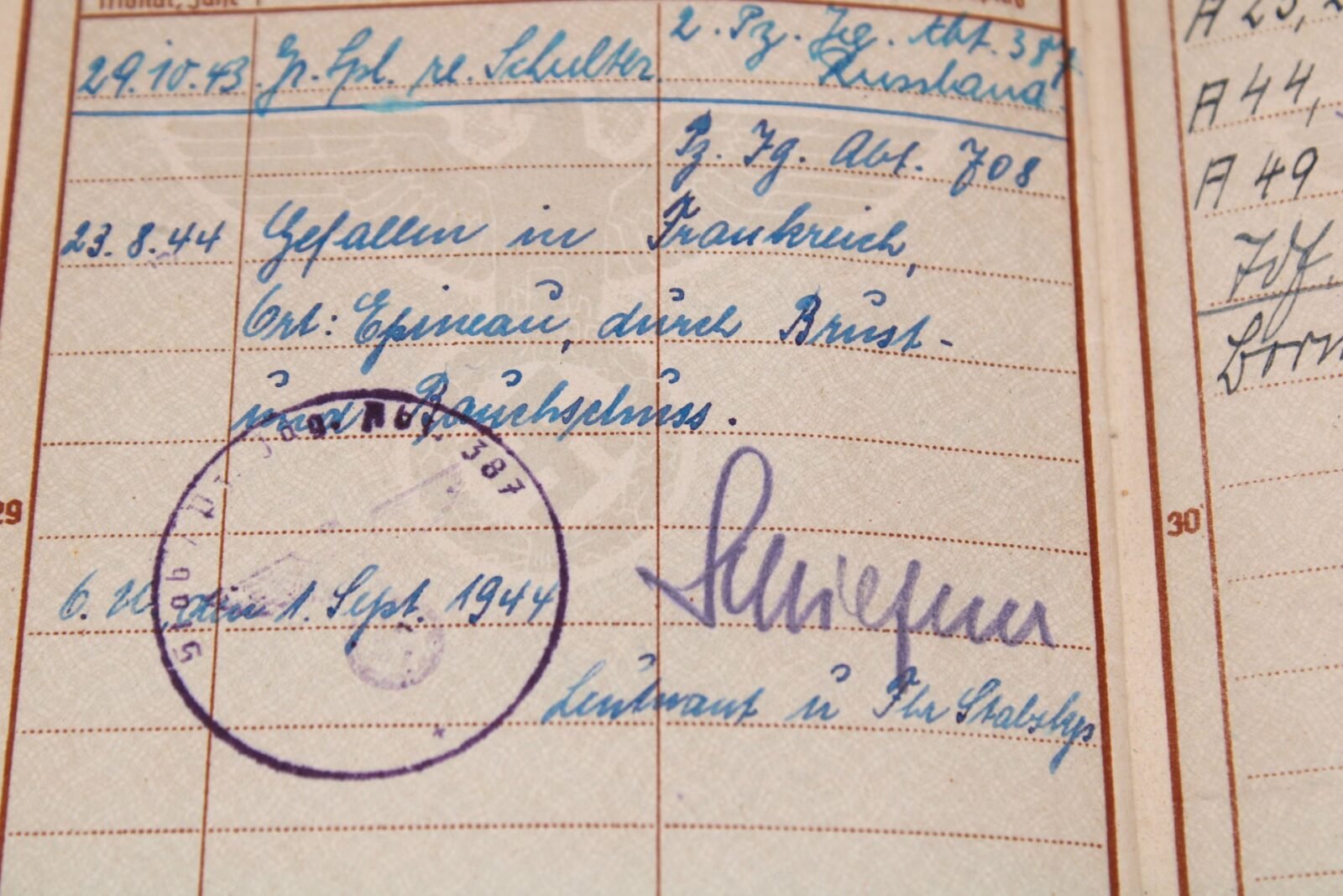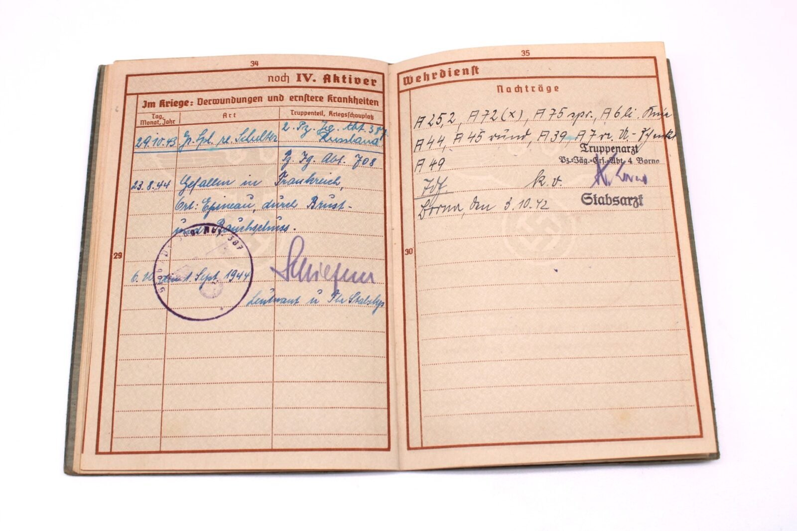 KIA Wehrpass PzJgAbt708 (708.Inf.Div.) (France EK2 ’44)