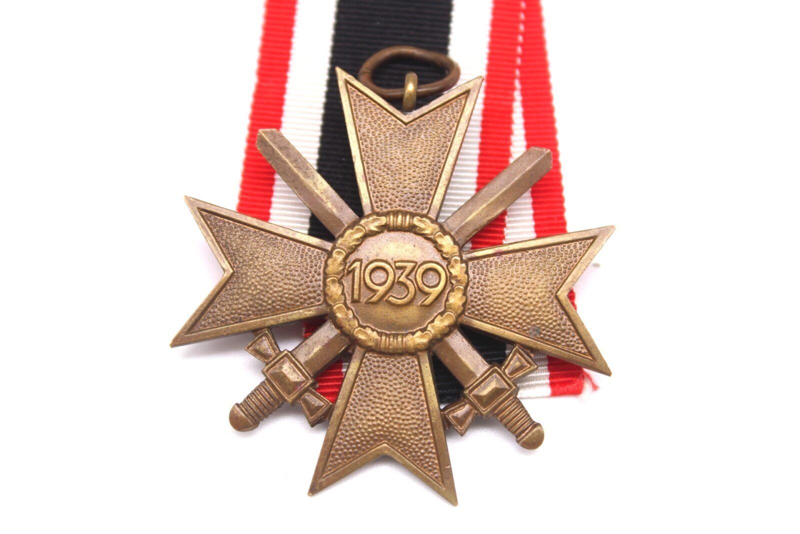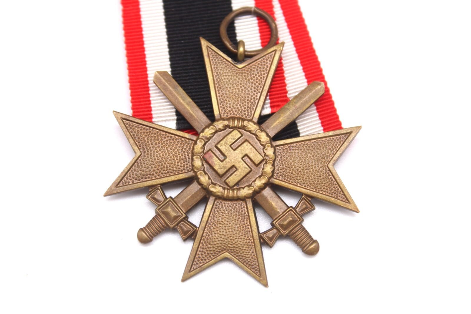 Original Kriegsverdienstkreuz 2. Klasse mit Schwertern (War Merit Cross 2nd Class with Swords). Maker marked “37” for Adolf Baumeister, Lüdenscheid. Good condition.